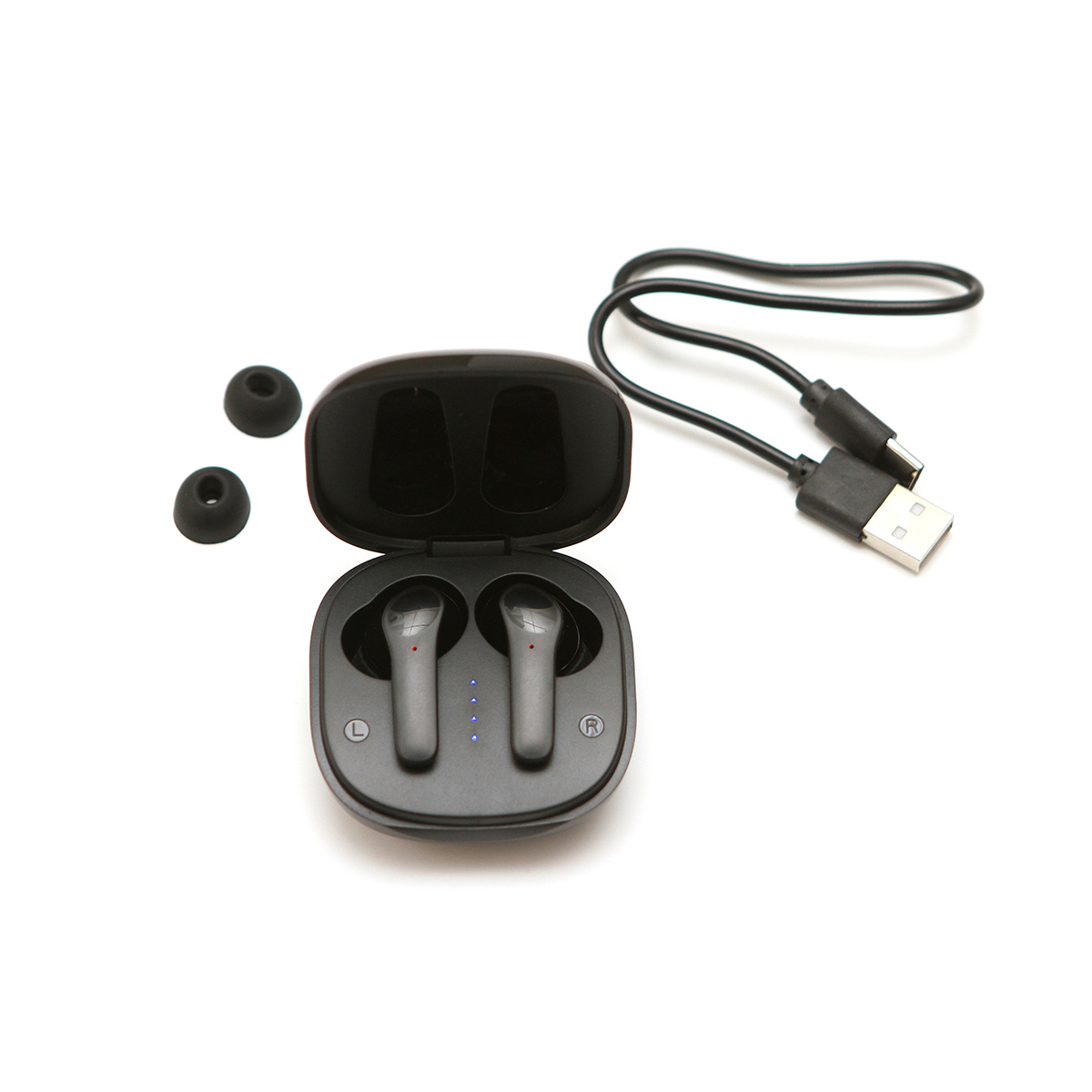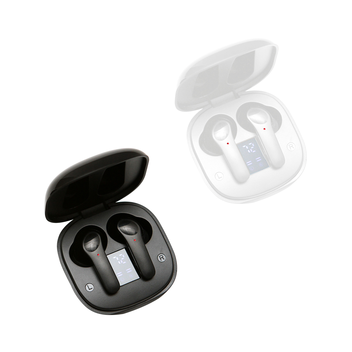 Audífonos inalámbricos cuenta con pantalla para indicar nivel de carga, función touch y puerto de carga tipo C. Incluye estuche de carga.