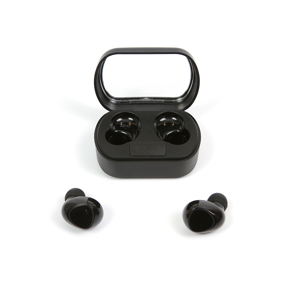 Audífonos estéreo inalámbricos, fabricados en plástico, con estuche de carga. Versión Bluetooth V5.3, distancia de transmisión óptima de hasta 10 m. Duración de 4 horas de reproducción. Interfaz de carga tipo USB-C.