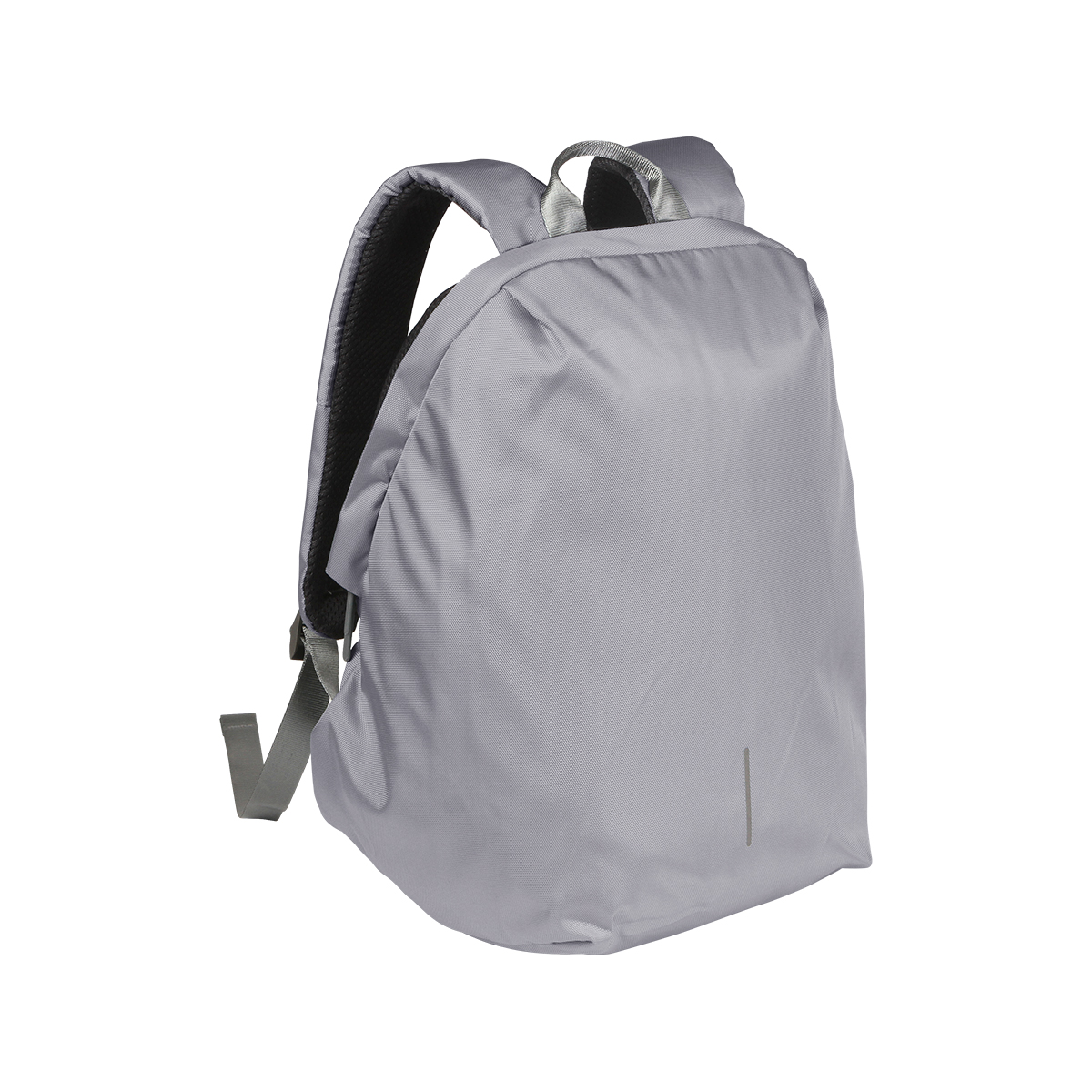 Backpack fabricada en poliéster reciclado repelente al agua, con compartimento acolchado para laptop de 15.6", bolsillo frontal y bolsillo oculto, manga para trolley en la parte trasera para colocarla en el equipaje.