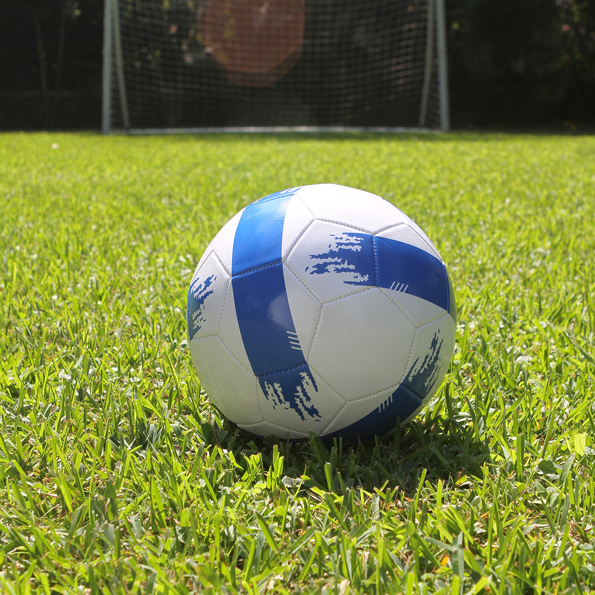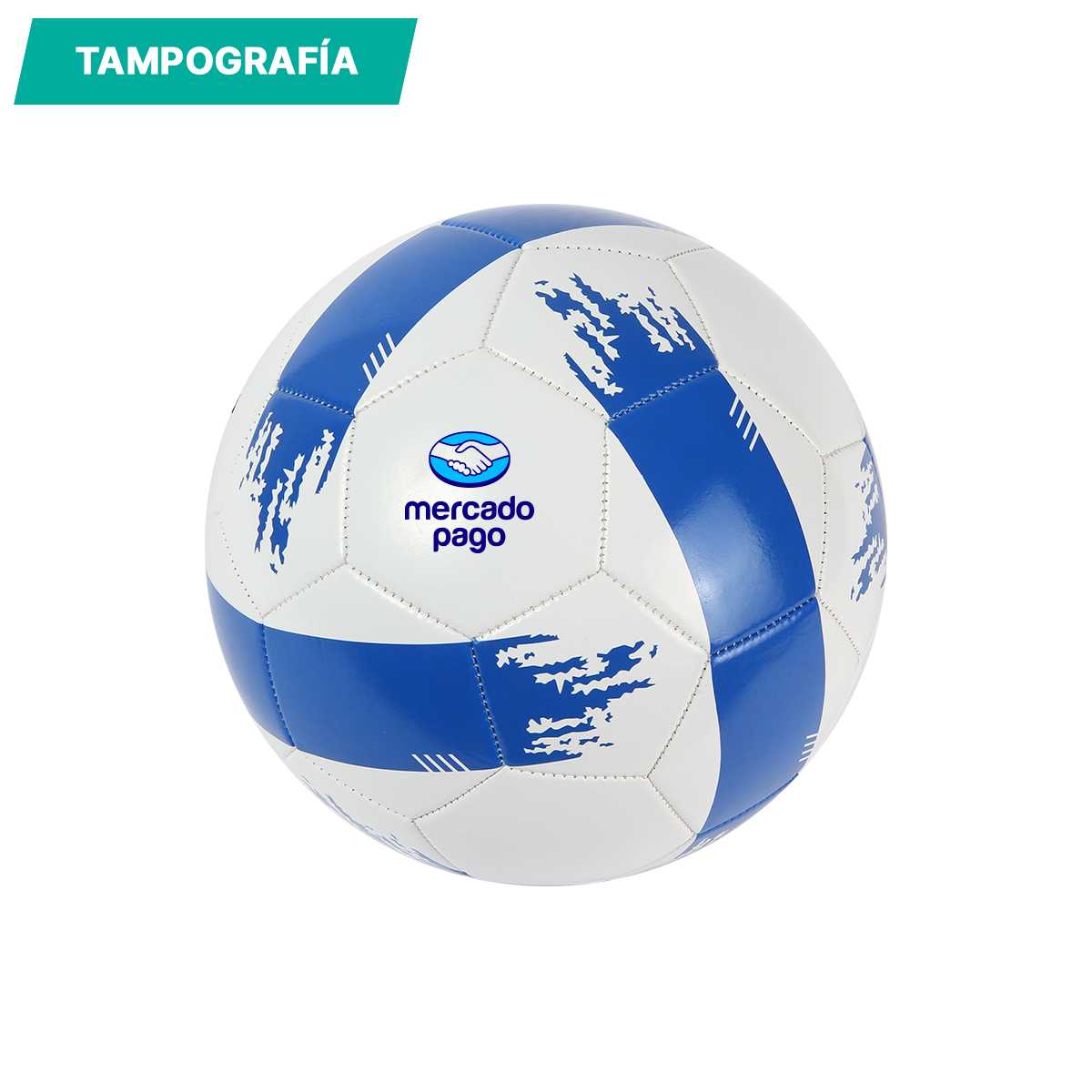 Balón promocional de futbol soccer, medida # 5, fabricado en PVC de 2 mm de calibre. Cosido a maquina. Incluye válvula y bomba de inflado. Acabado brillante con cámara reforzada de goma que mantiene la forma y retiene el aire de mejor manera.