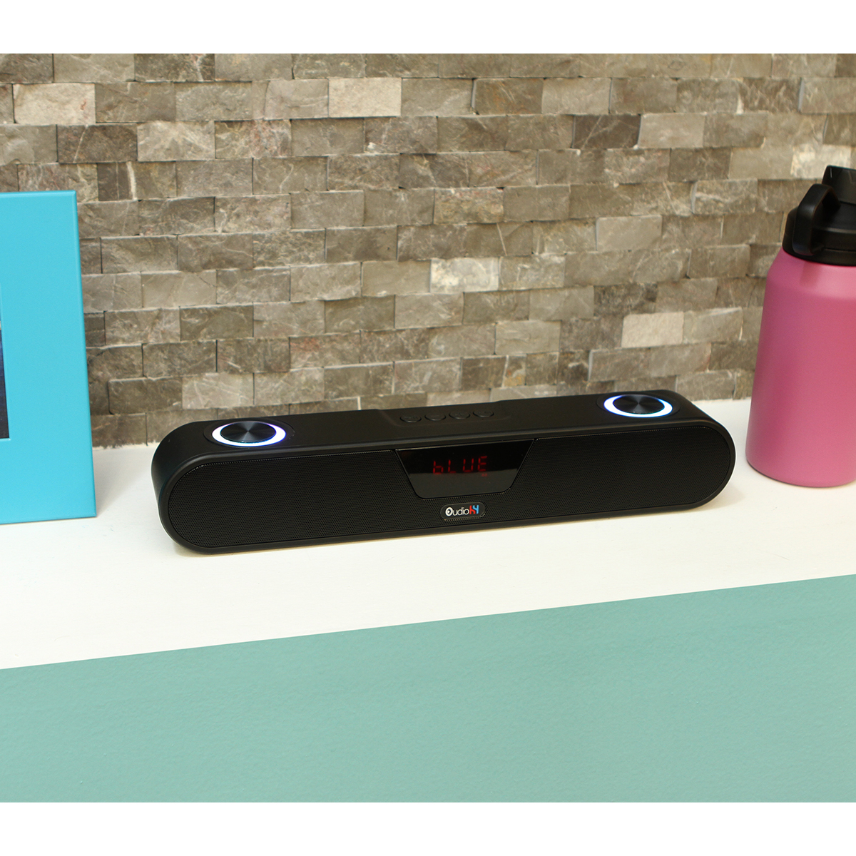 Bocina inalámbrica con radio FM, con entrada para tarjeta TF, USB y auxiliar. Incluye cable de carga tipo-C. Incluye caja de cartón individual.