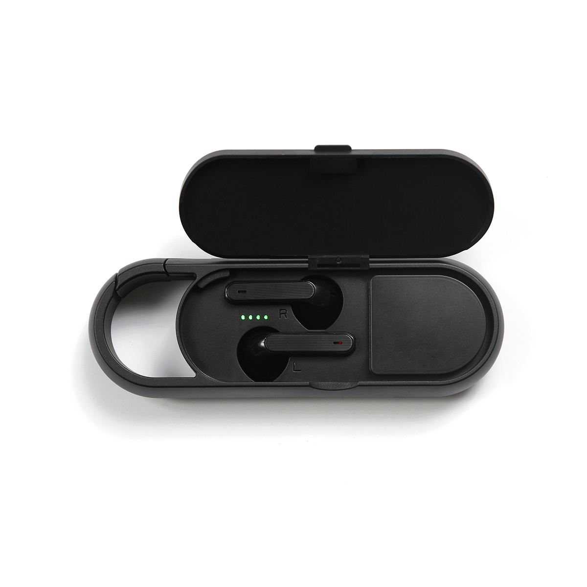 Bocina Bluetooth con Auriculares inalámbricos incluidos y arnés para facilitar la transportación. Carga a través de cable USB (incluido). Incluye caja de cartón individual.