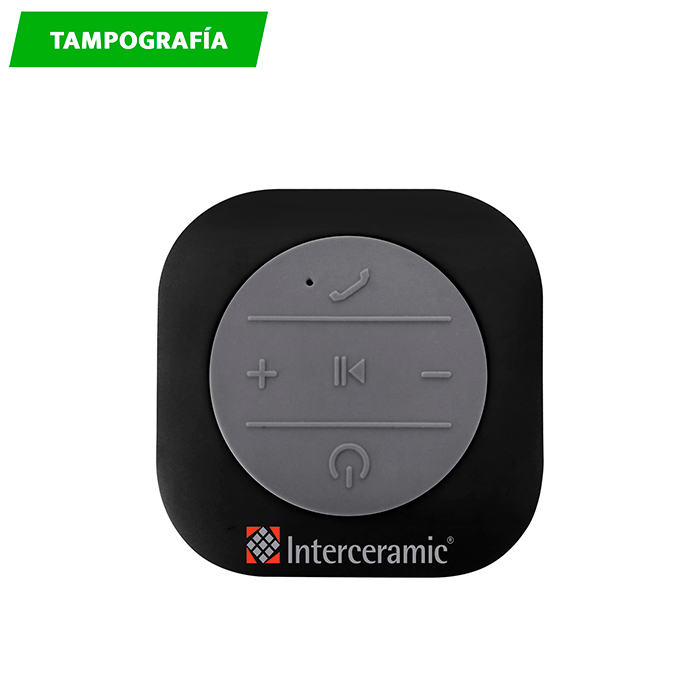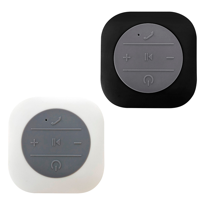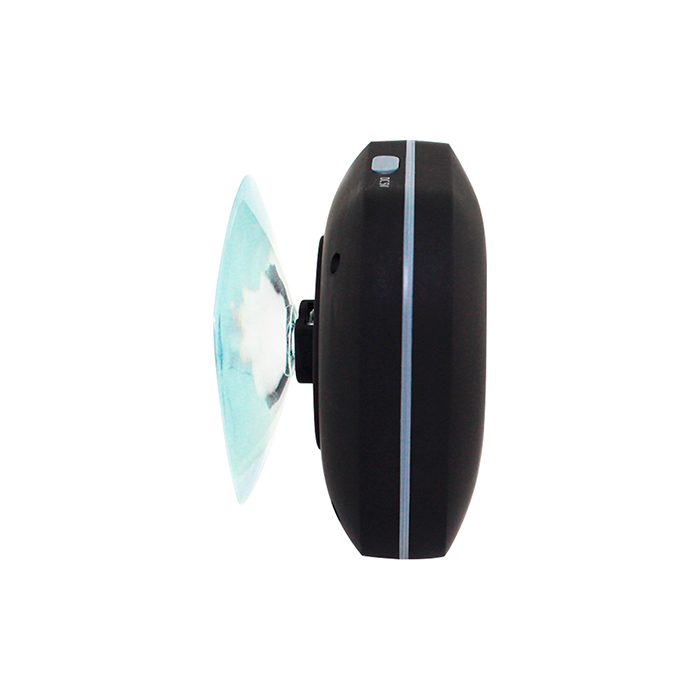 Bocina bluetooth fabricada en plástico con acabado en rubber, función de manos libres, resistente al agua, cuenta con ventosa de plástico. Incluye cable para recargar.