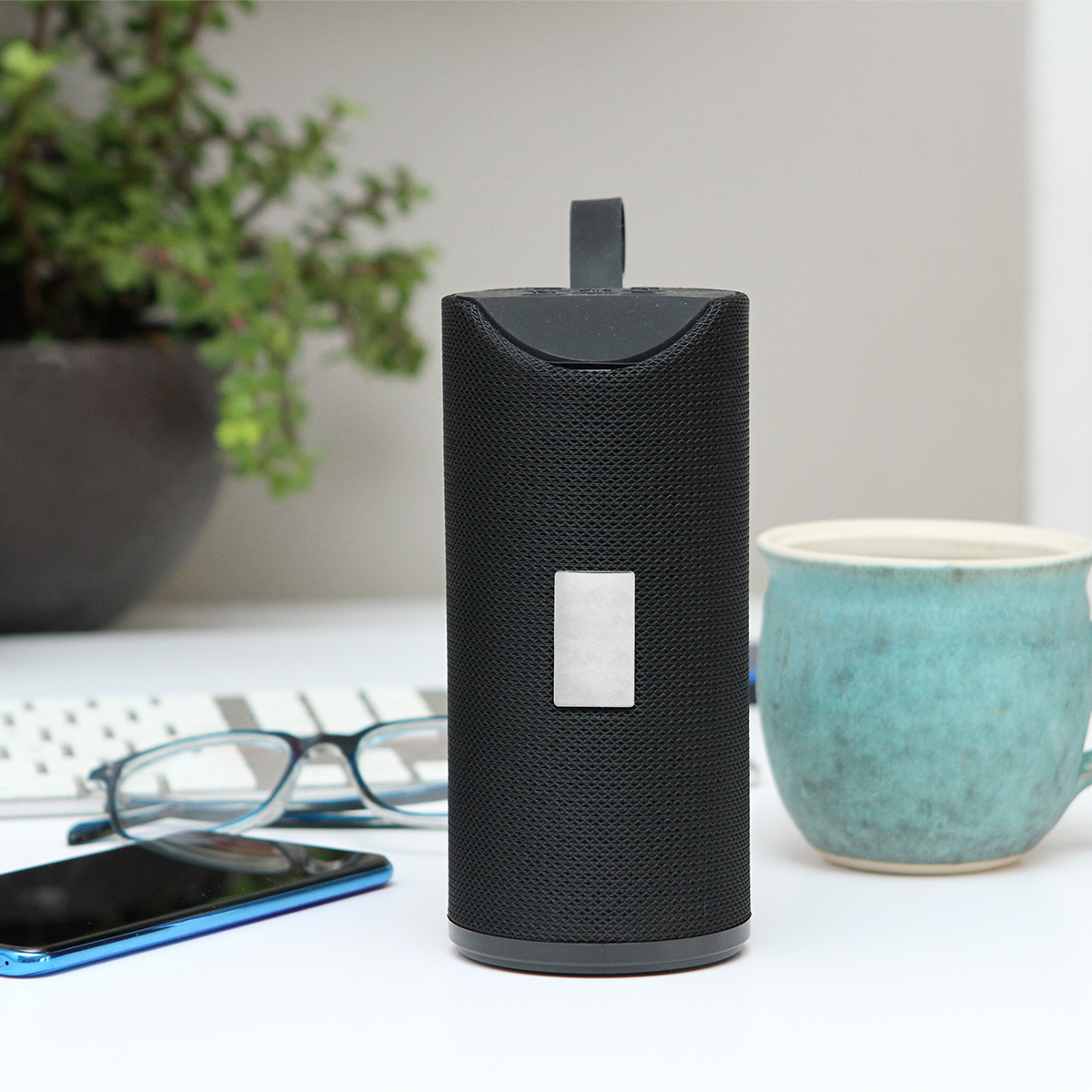 Bocina inalámbrica con función bluetooth, carga a través de cable usb (incluido), cable auxiliar para audio y caja individual de cartón.