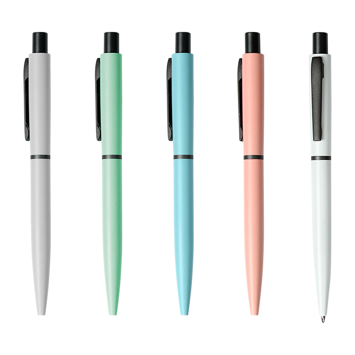 Bolígrafo retráctil con barril de aluminio, botón y clip cromados, tinta de escritura negra.