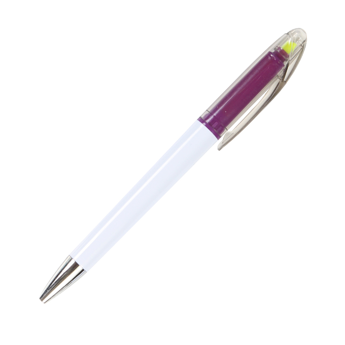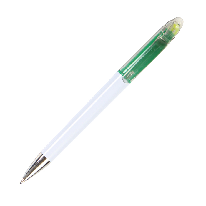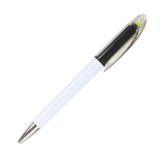 Bolígrafo twist fabricado en plástico ABS con marca textos, tapa transparente y detalle cromado. Tinta de escritura negra.