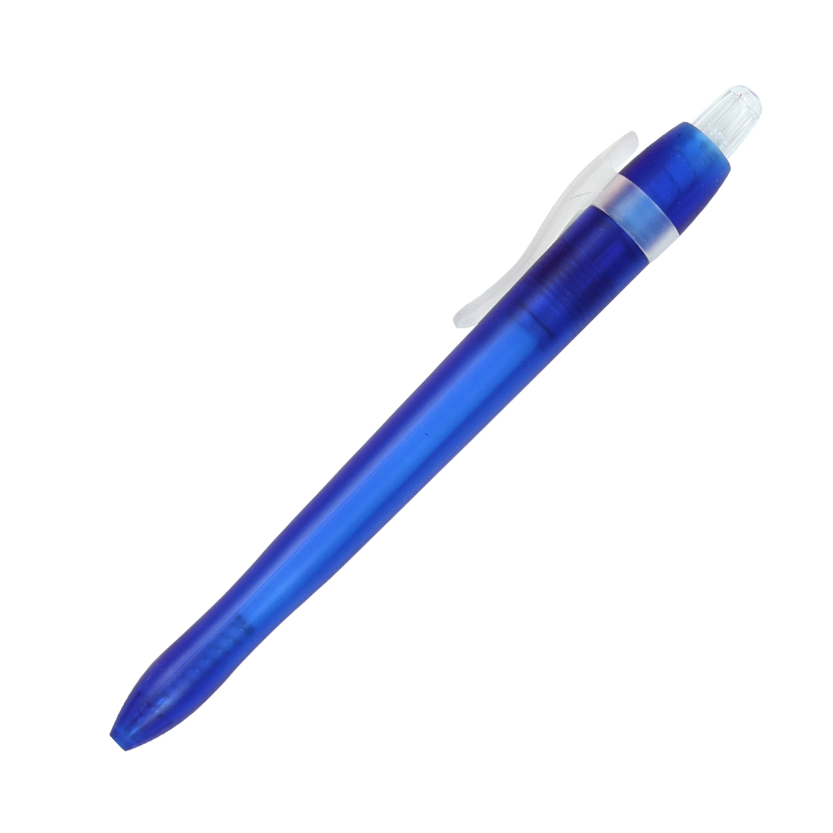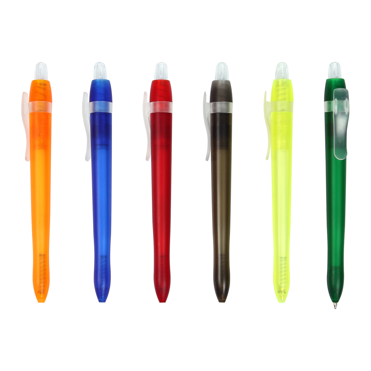 Bolígrafo de plástico translúcido retráctil y tinta de escritura negra.