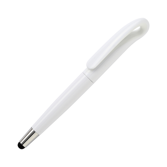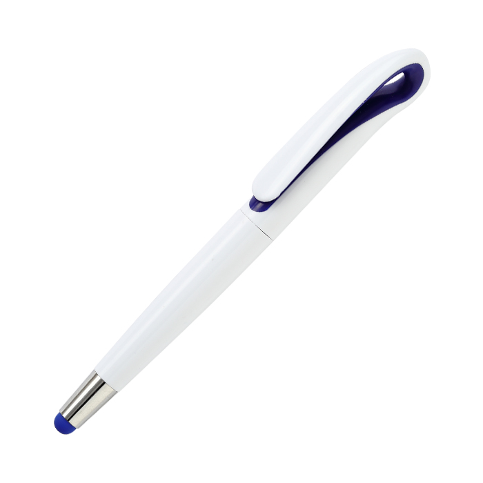 Bolígrafo de plástico con giro, touch, cuenta con detalle de color y tinta de escritura azul.