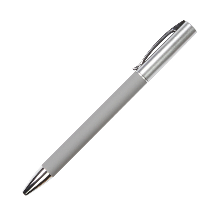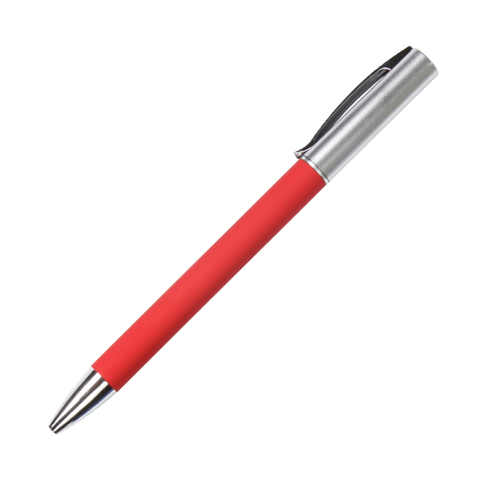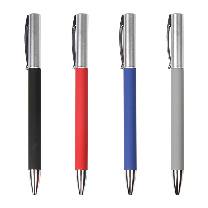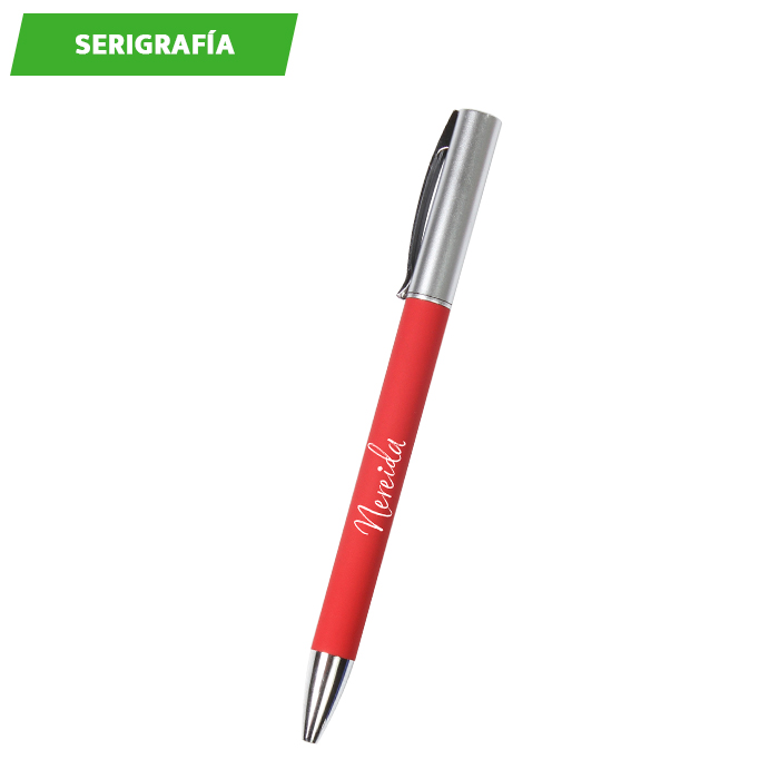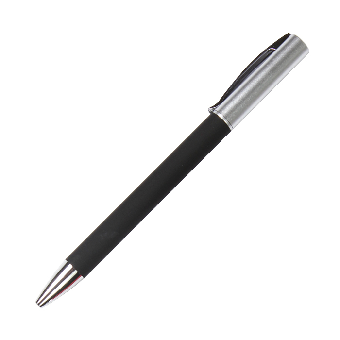 Bolígrafo twist con barril en terminado rubber con clip, punta metálicos y tinta de escritura negra.