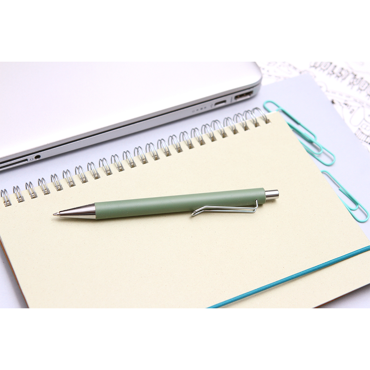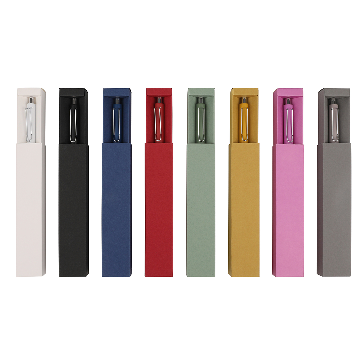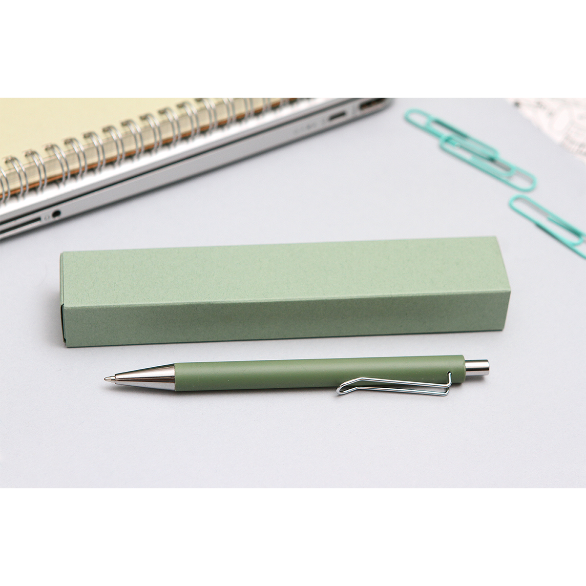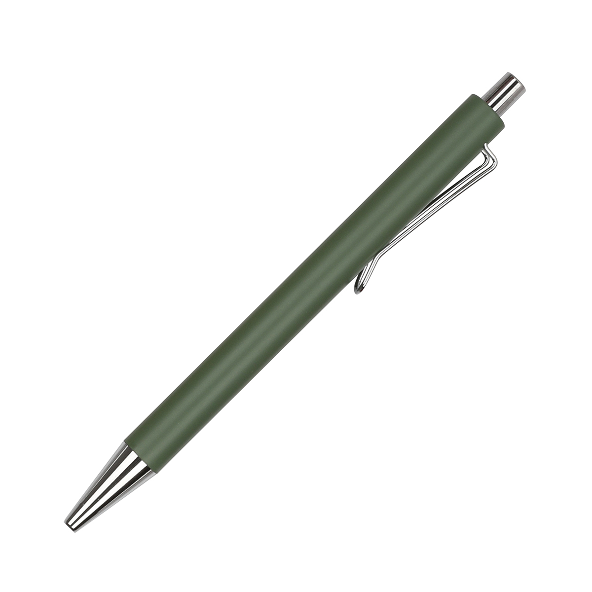 Bolígrafo de acción de empuje, con barril metálico de color sólido con detalles y clip color cromo plateado. Refill 0,07mm. Incluye caja individual de cartón. Con tinta de escritura negra.