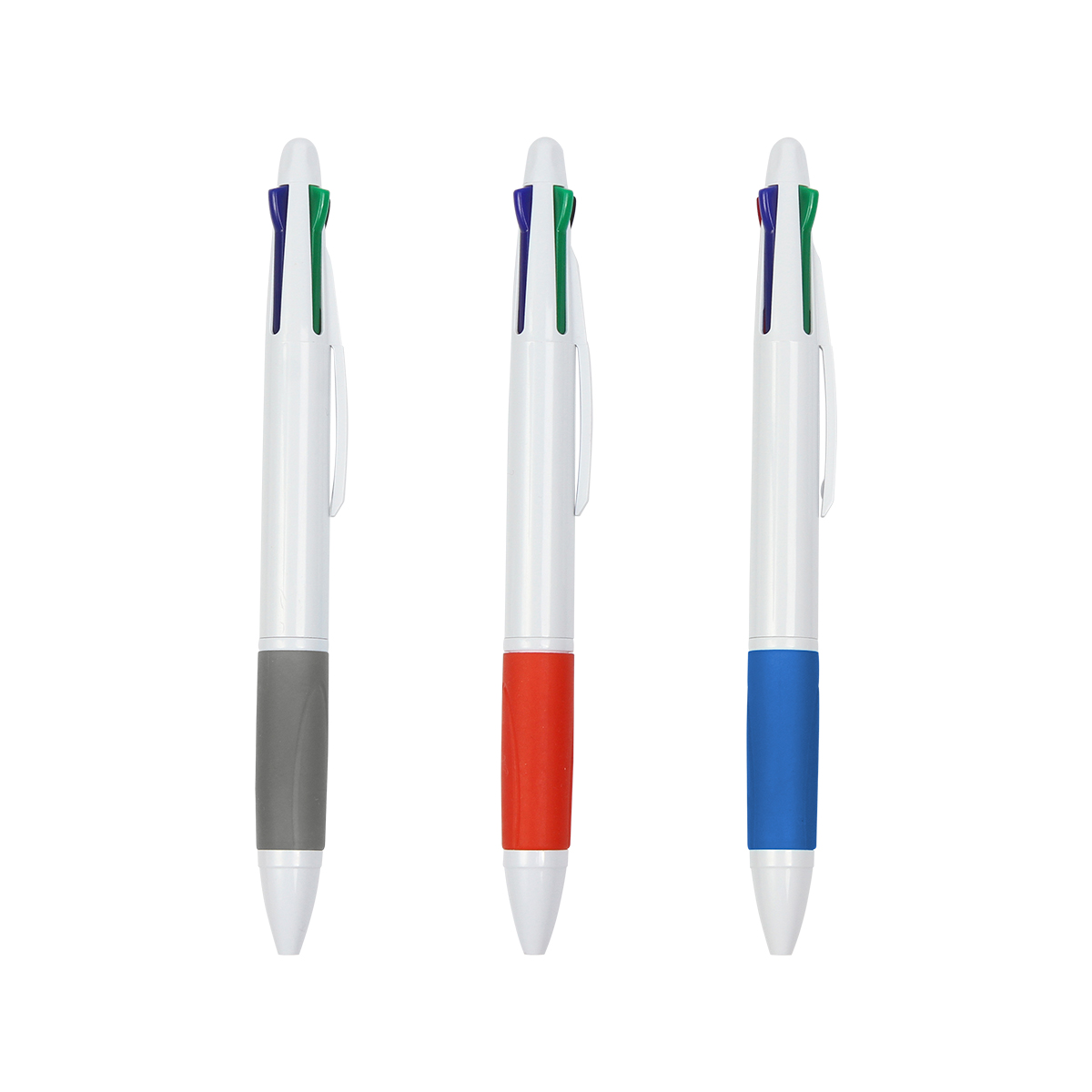 Bolígrafo 4 en 1, con barril de plástico ABS y grip suave, 4 colores de escritura (azul, negro, rojo, verde).