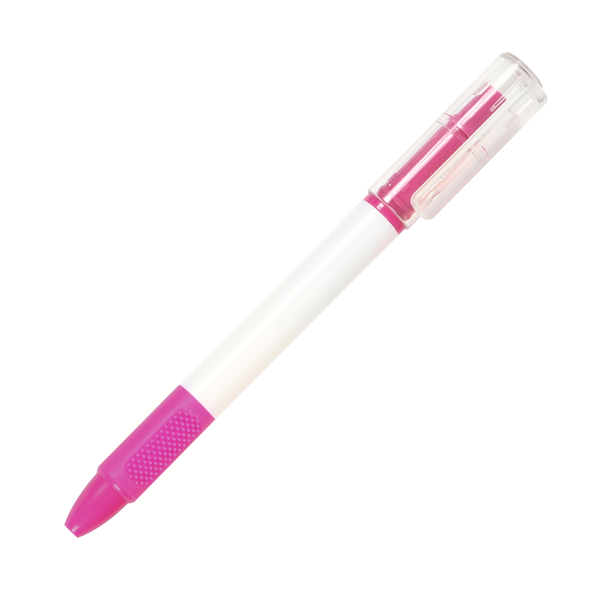 Bolígrafo 2 en 1 con acción giratoria y marca textos con tapa traslúcida. Barril hecho de plástico reciclado ABS con detalle en goma con textura para mejor uso. Tinta de escritura negra y el marca textos hace juego según el color exterior. Combina funcionalidad y versatilidad en un solo producto.