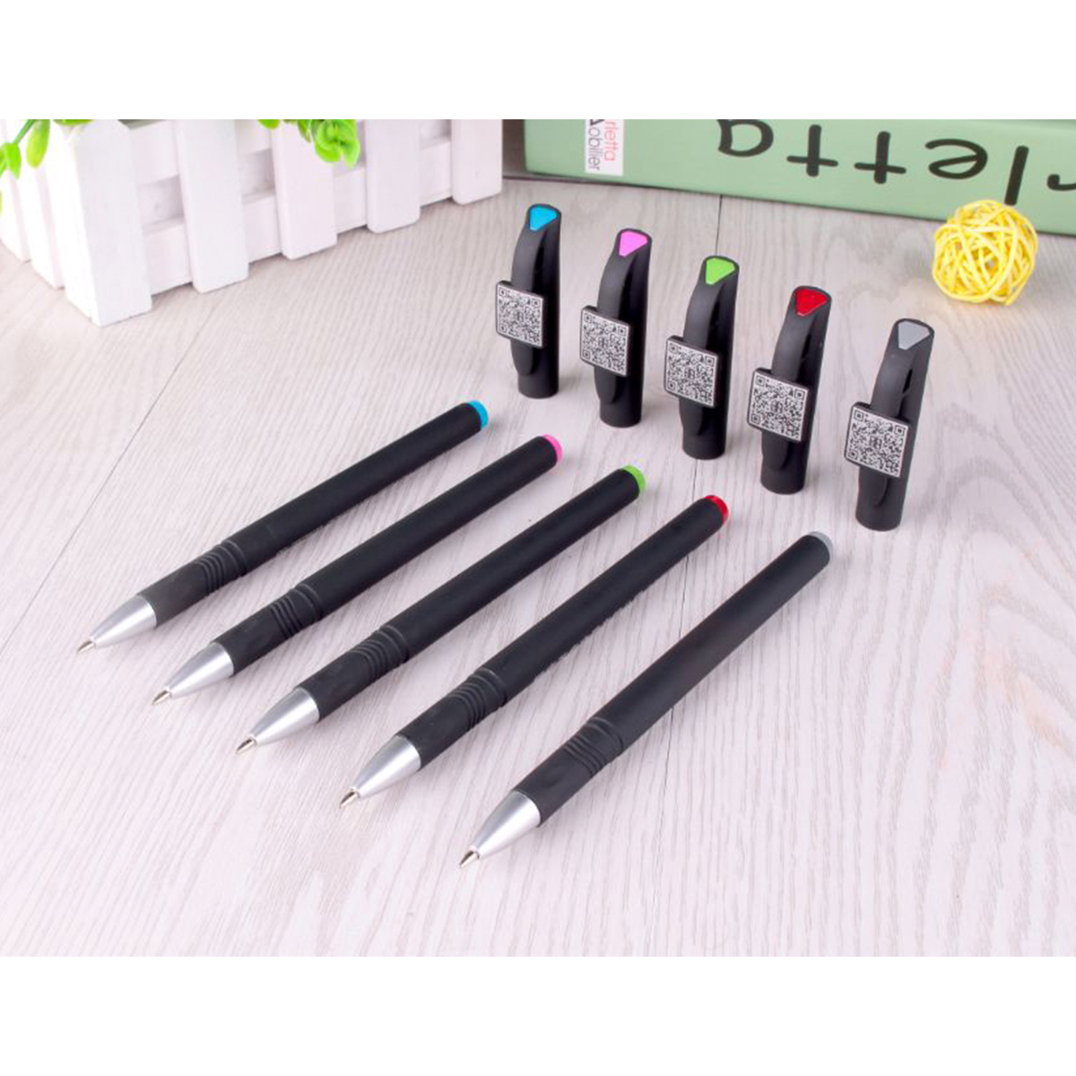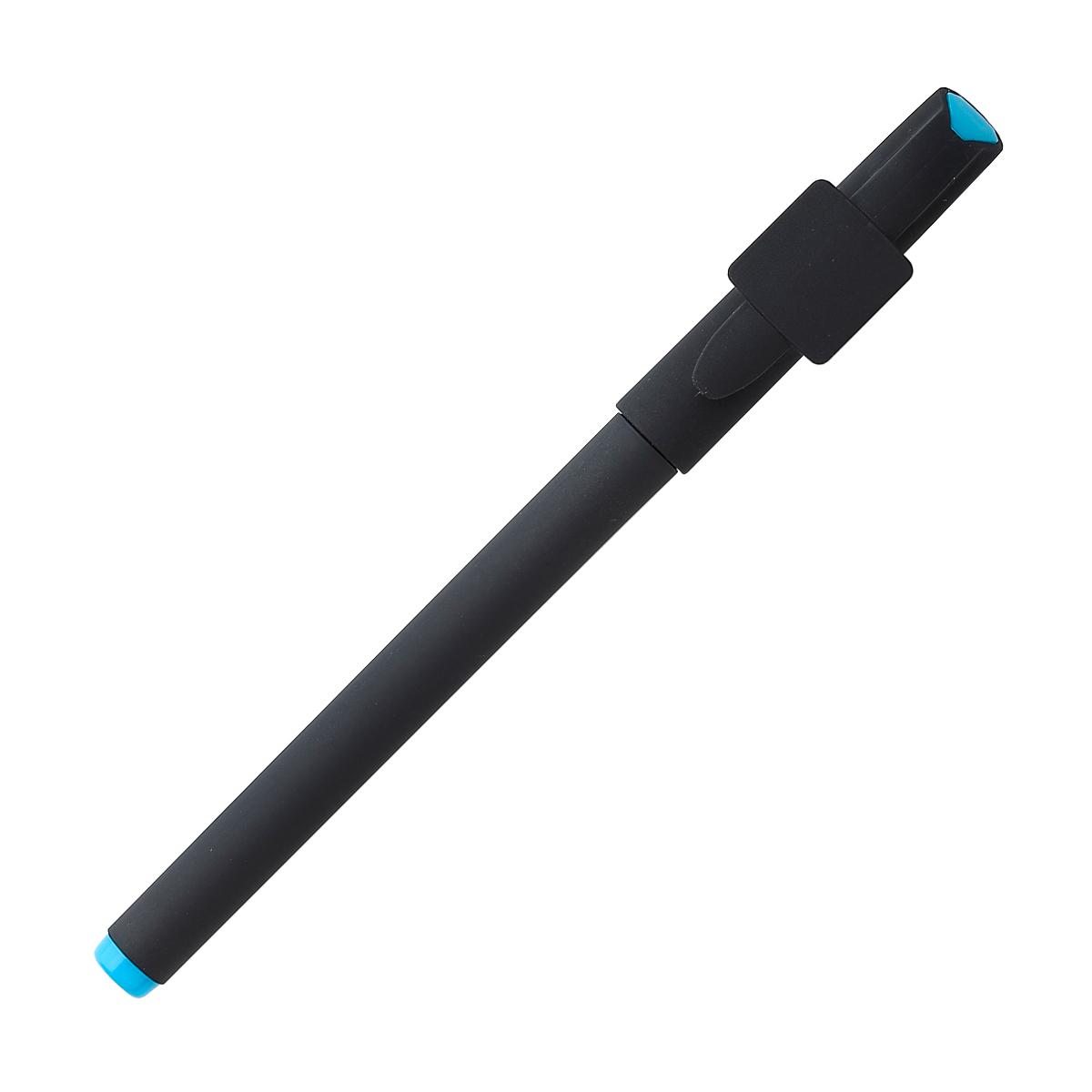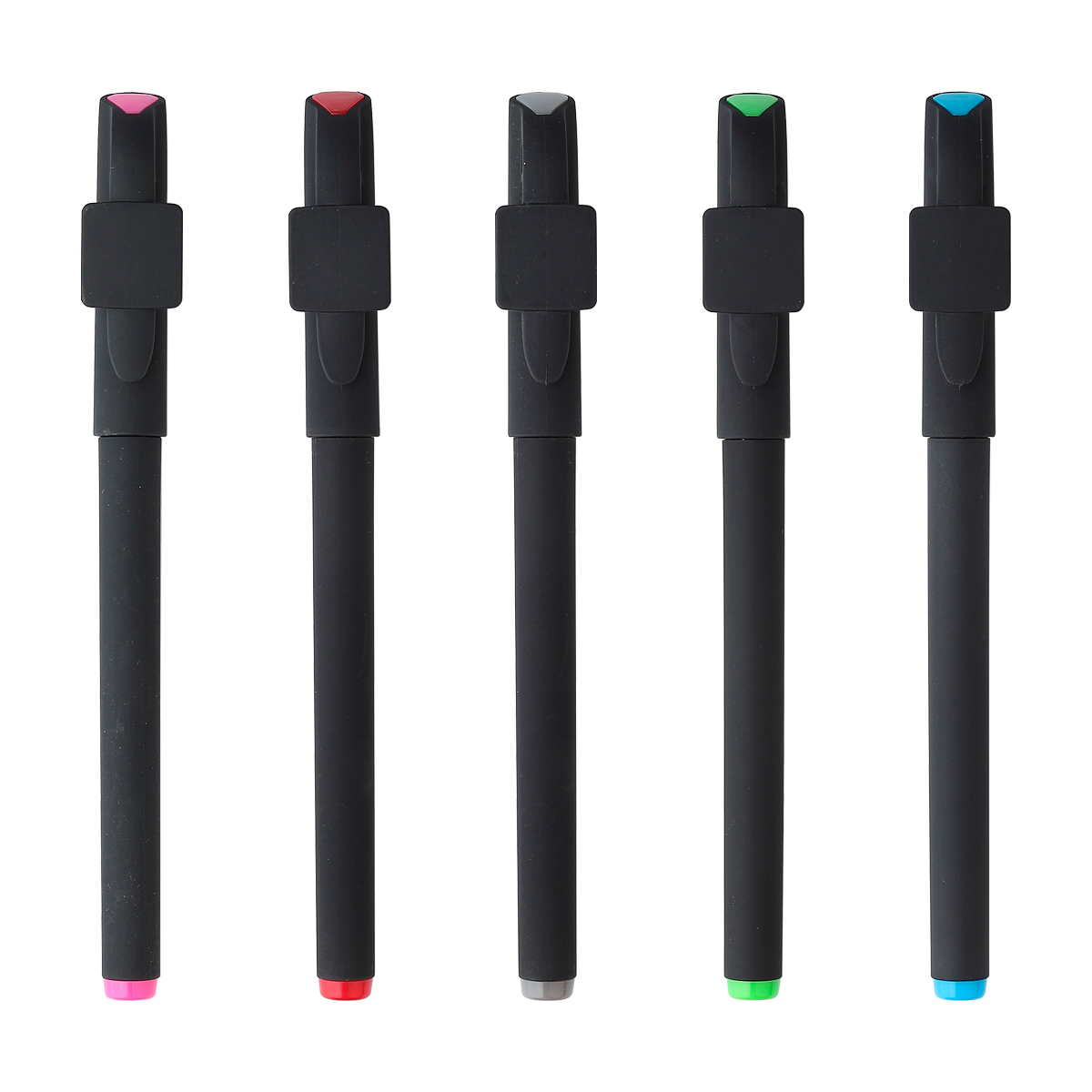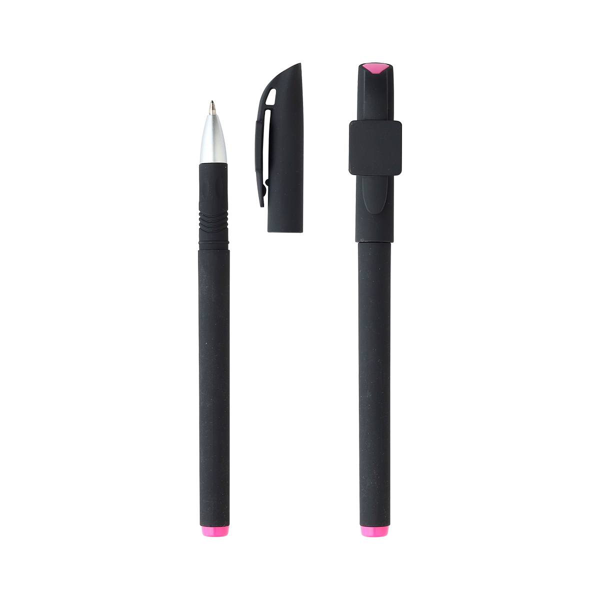 Bolígrafo de plástico con clip, acabado mate y detalles de color en tapón y parte superior. Tinta de gel escritura negra.