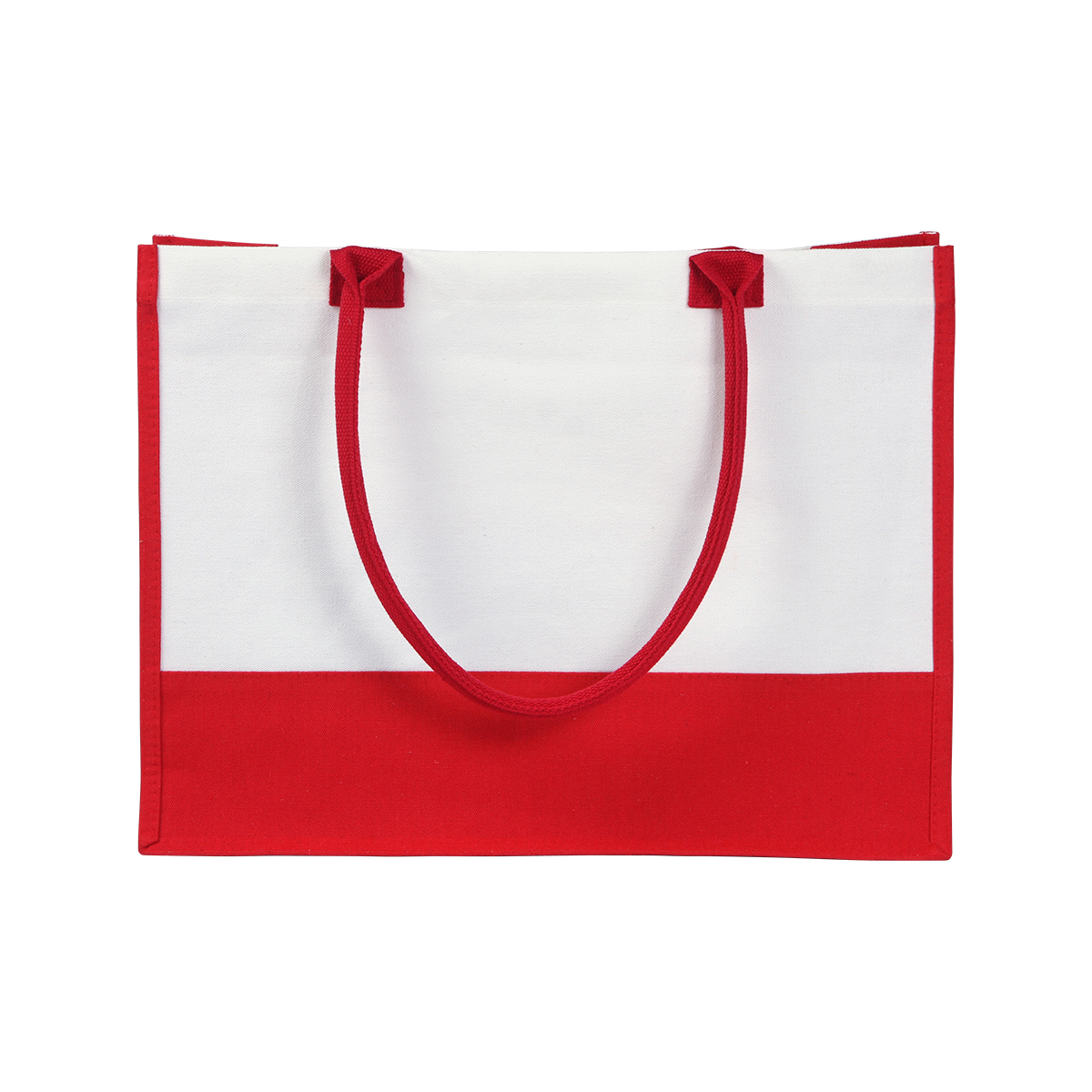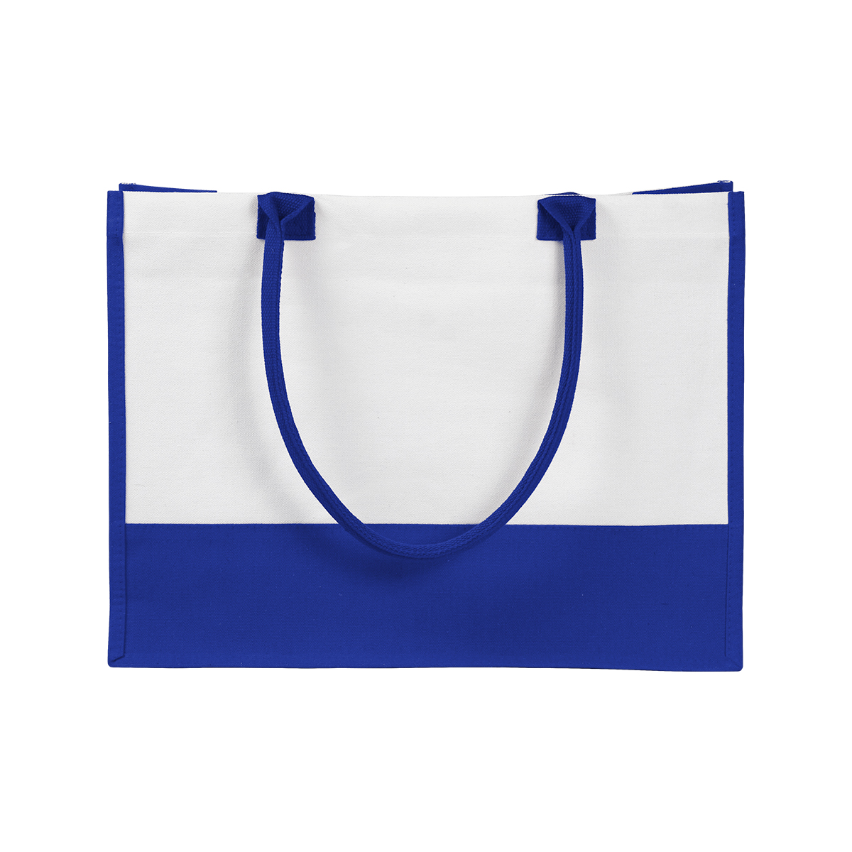 Bolsa de lona de algodón de 10 onzas, con detalles de color en la base, laterales y asas.