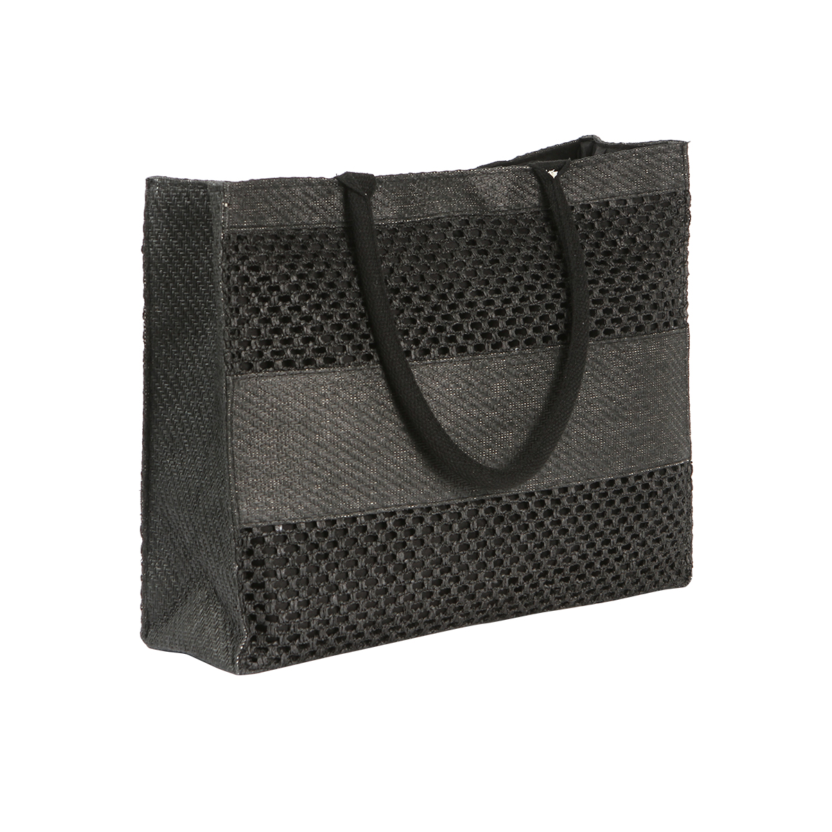 Bolsa de mano fabricada en papel, con forro interior de poliéster. Cuenta con un compartimento principal con broche magnético. Cuenta también con dos asas de algodón y poliéster para mejor comodidad de uso