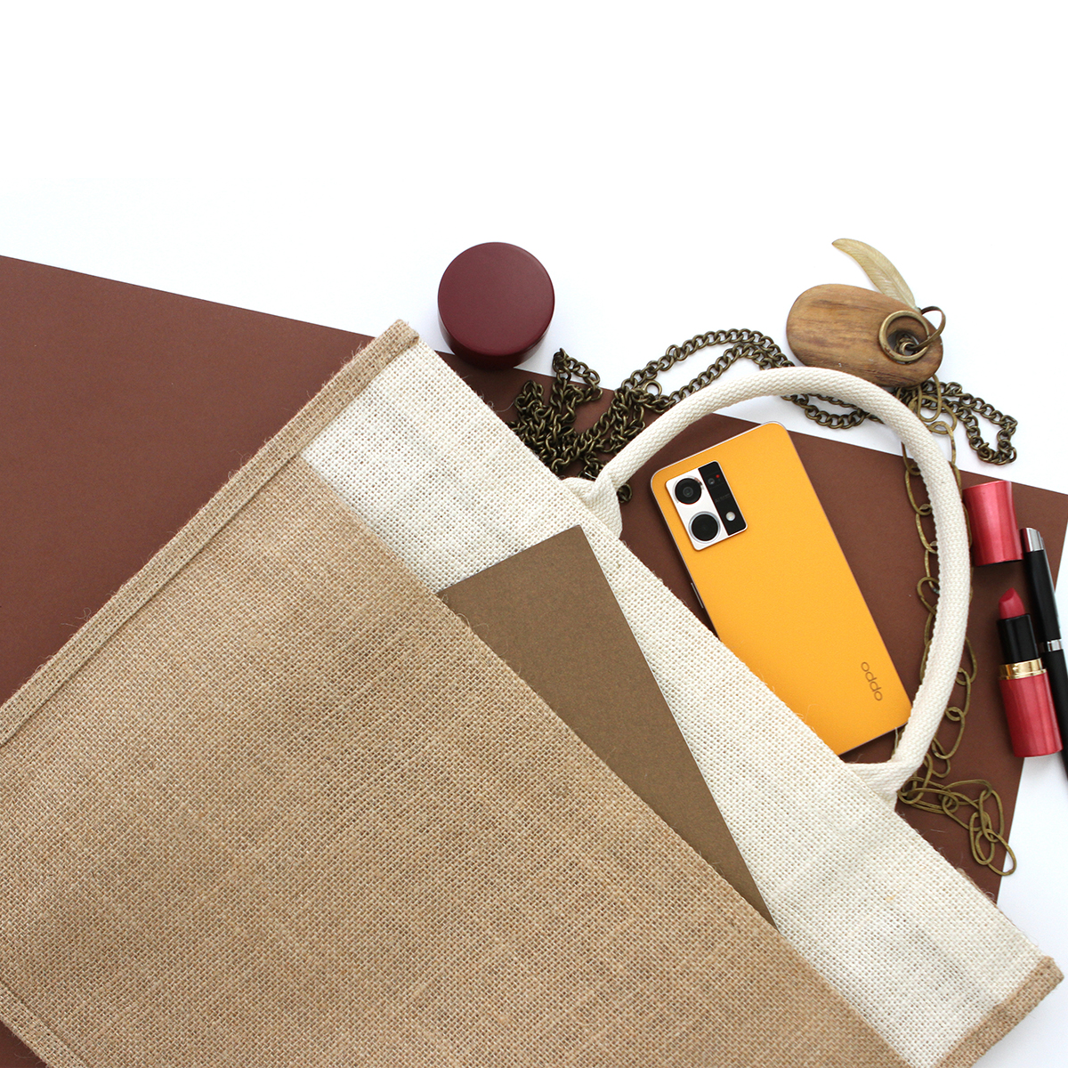 Bolsa bi-tono fabricada en yute con asas de algodón.