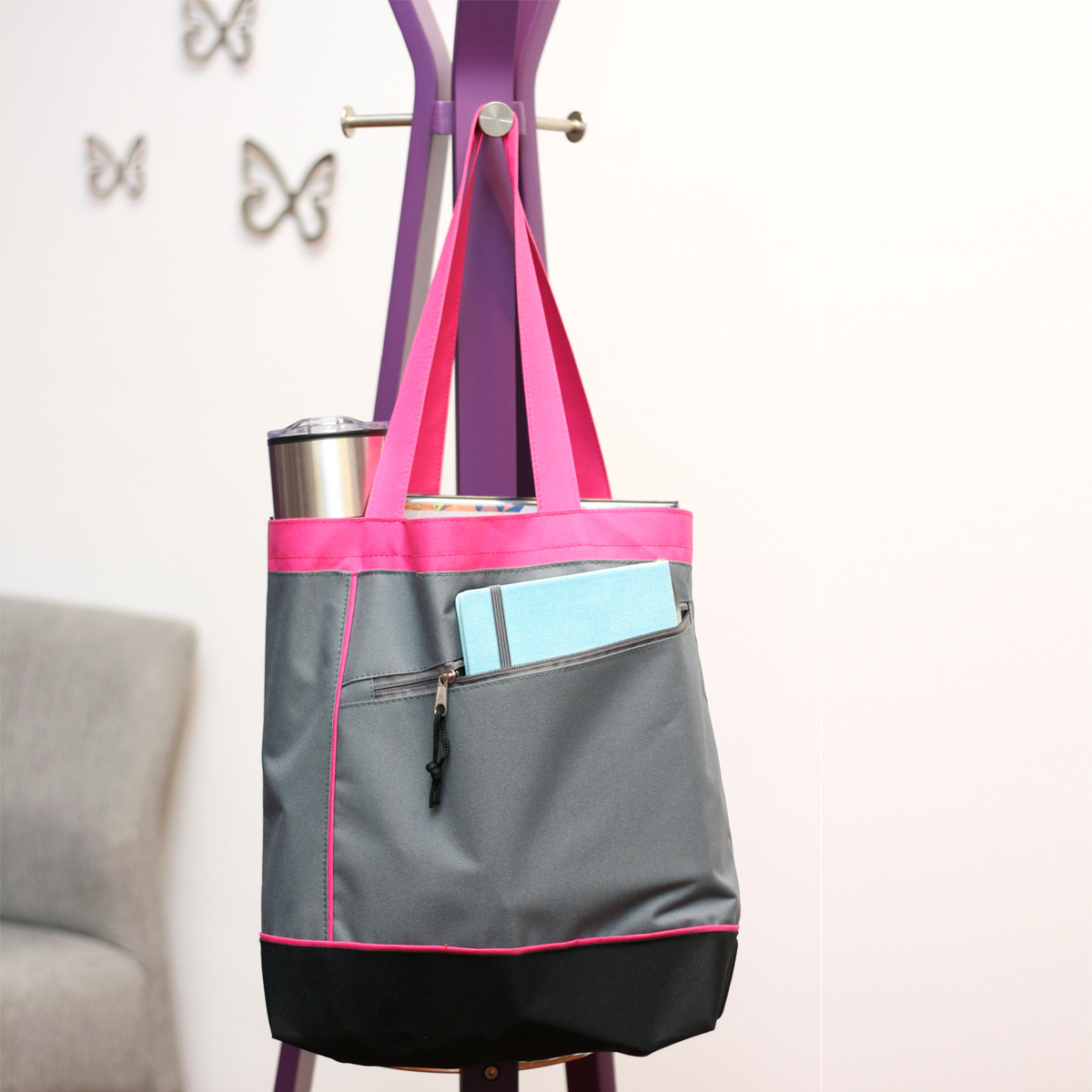 Bolsa multiusos con bolsa al frente de cierre, fabricada en poliéster y con 2 asas de gran resistencia.