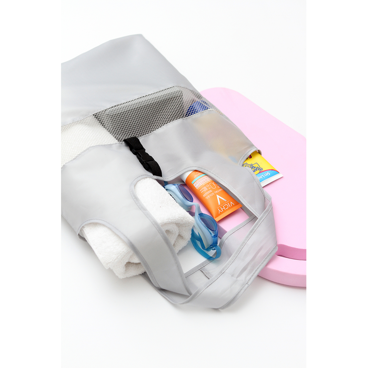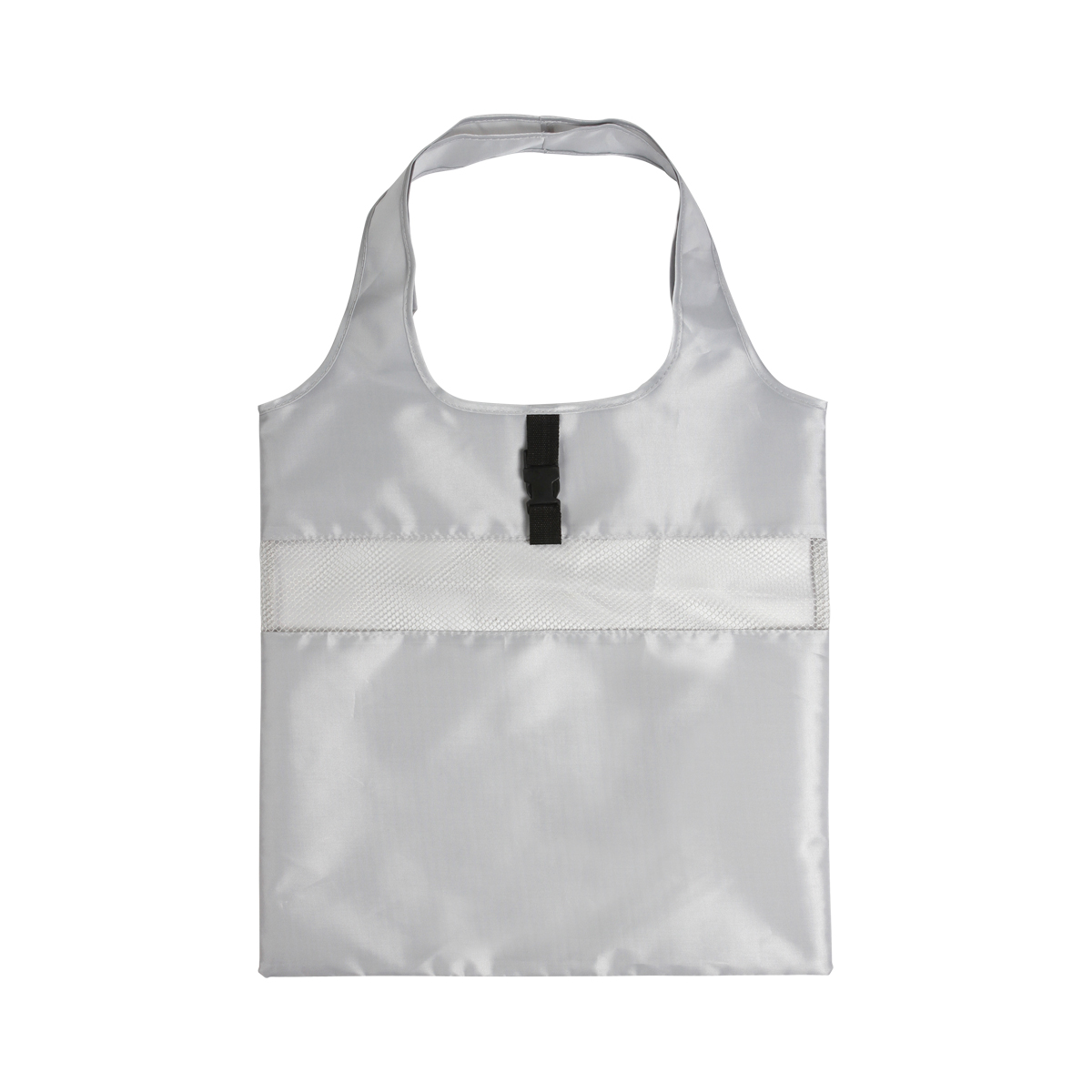 Bolsa plegable reutilizable fabricada en poliéster y malla, con broche de seguridad en la parte media. Es totalmente portátil y útil y la puedes utilizar en cualquier momento.
