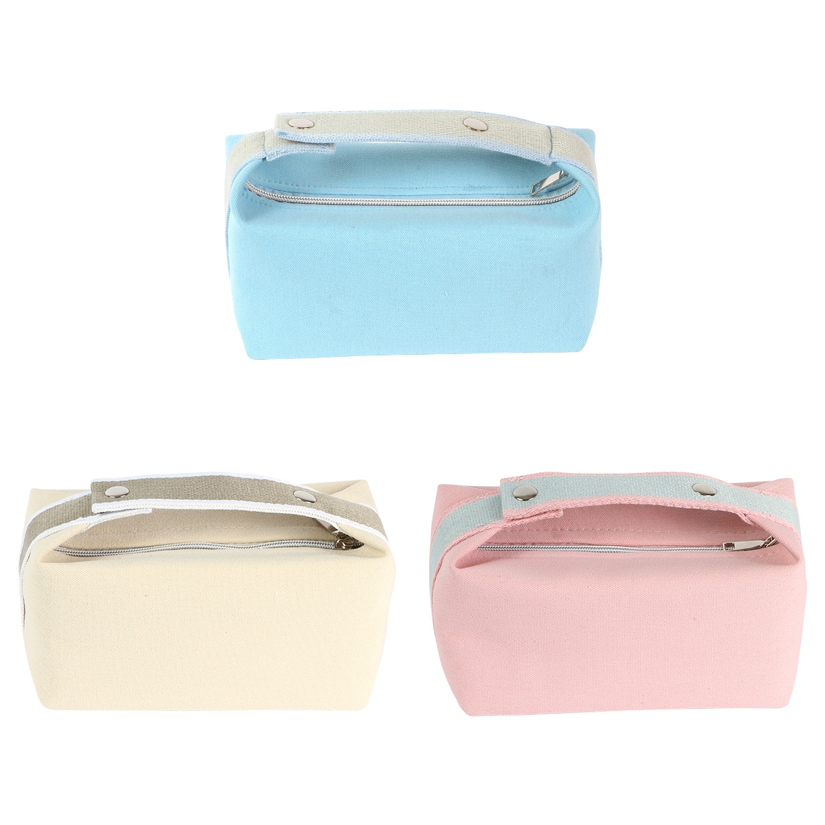 Bolsa cosmetiquera fabricada en tela de algodón tipo canvas y poliéster, su forro es 100% poliéster. Cuenta con un compartimento principal con cierre de metal, incluye una agarradera superior con broches a presión para poder ajustarla. Diseño práctico y elegante que ayuda a organizar y transportar los productos de belleza de manera cómoda y segura.