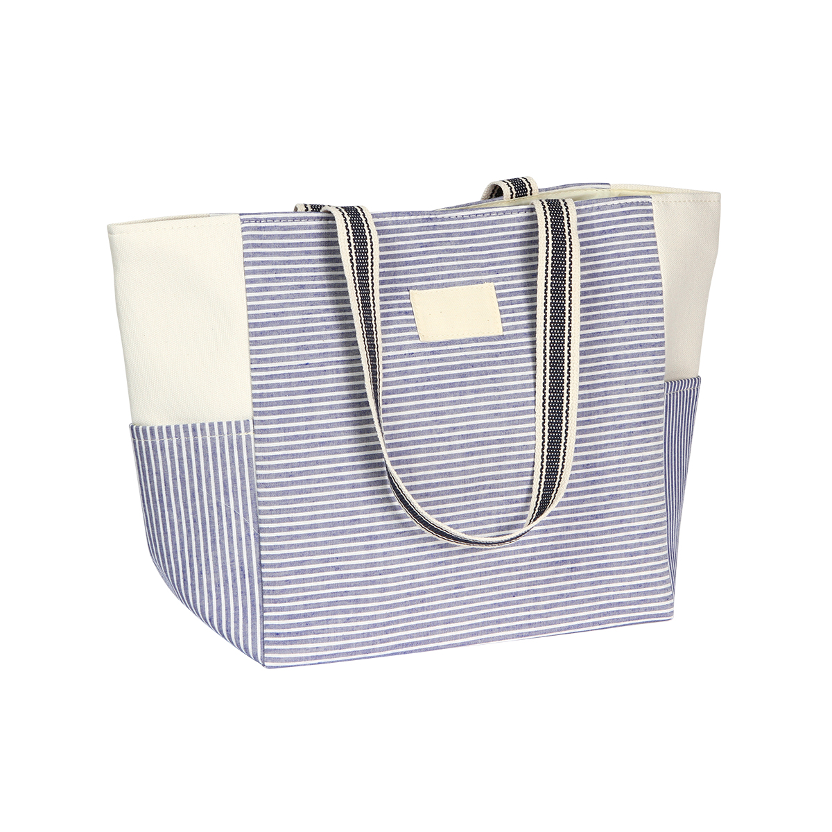 Bolsa ideal para playa fabricada en algodón y poliéster, en la parte interna tiene un forro hecho de poliéster. Cuenta con asas y bolsas exteriores.