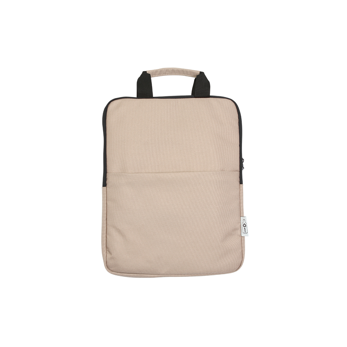 Bolso para laptop fabricado en poliéster y RPET. Cuenta con asa, correa, cierre, compartimento principal y dos bolsillos exteriores frontales.