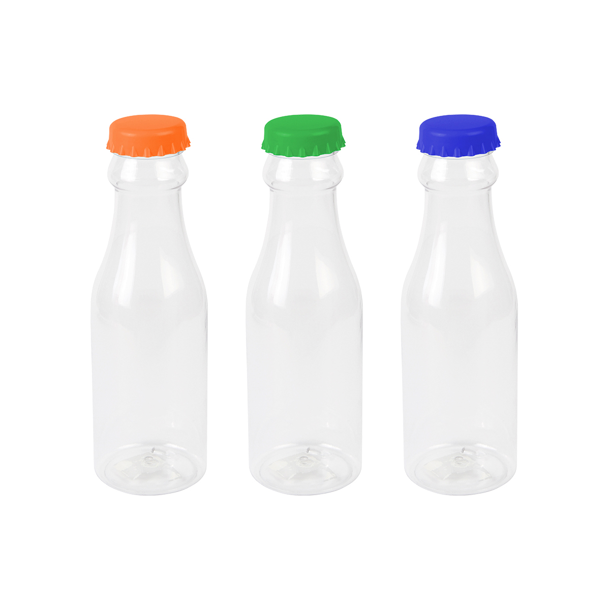 Botella transparente de Tritan con tapa de color en forma de corcholata, capacidad de 500 ml (16.5 oz).