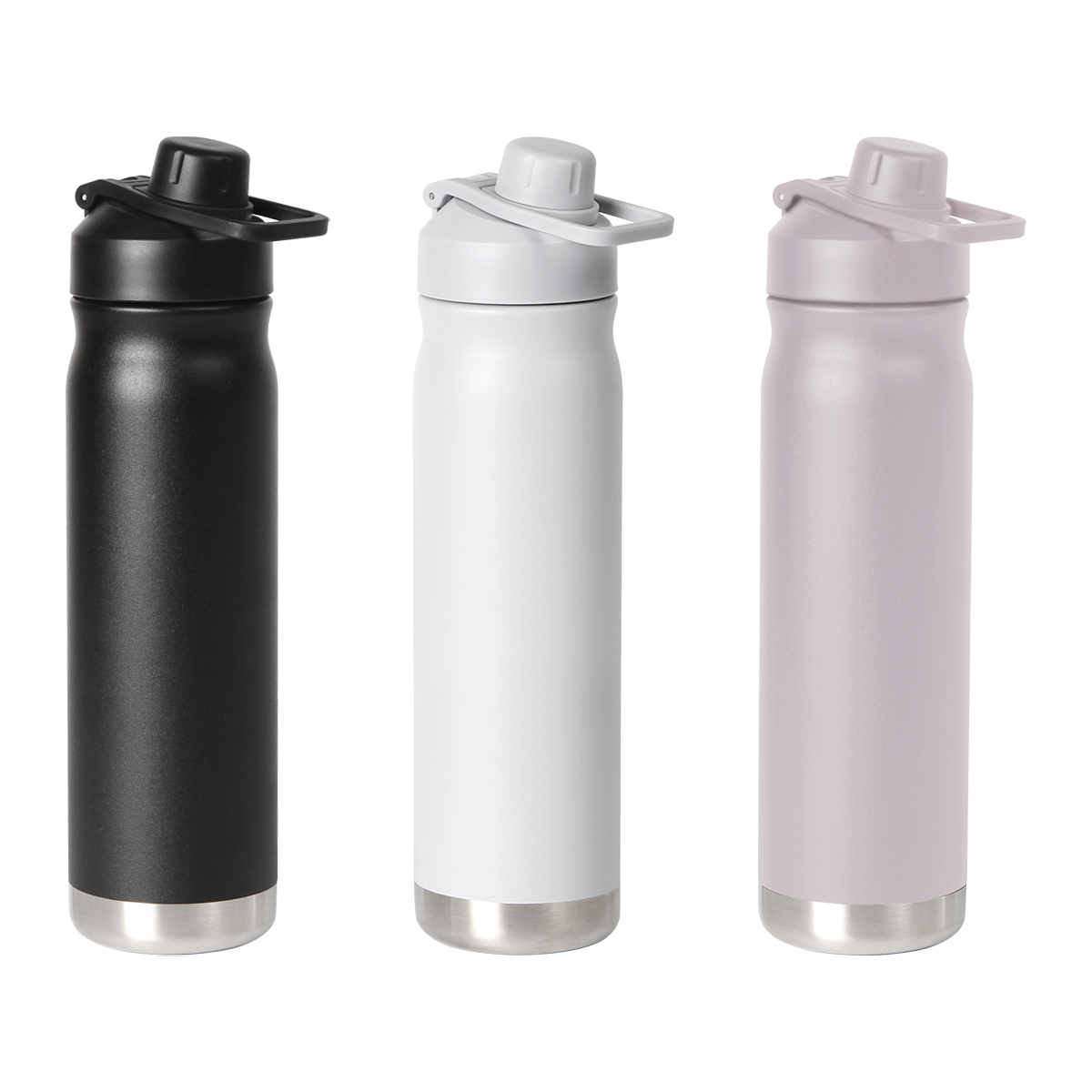 Botella deportiva de acero inoxidable doble pared, con tapa de polipropileno (PP), fabricado en materiales de grado alimenticio, mantiene bebidas frías o calientes por un largo tiempo, no usar en microondas, capacidad de 550 ml (18.5 oz). Incluye caja de cartón individual.