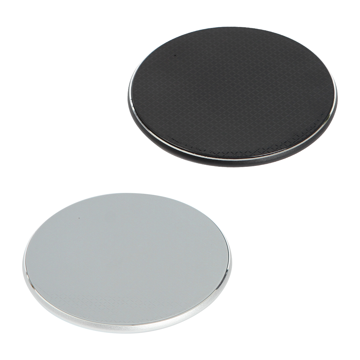 Cargador inalámbrico circular de 10 W fabricados en plástico ABS, con tecnología Qi. Carga a través de cable USB (incluido). Incluye caja de cartón individual.