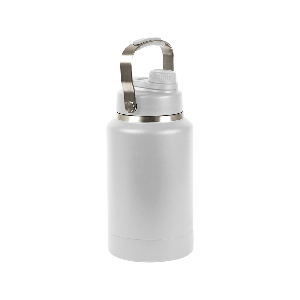 Cilindro doble pared fabricado en acero inoxidable 604, tapa de seguridad de rosca. Capacidad de 1,800 ml. Incluye caja de color individual y asa metálica para transportar, peso 1,150 g.