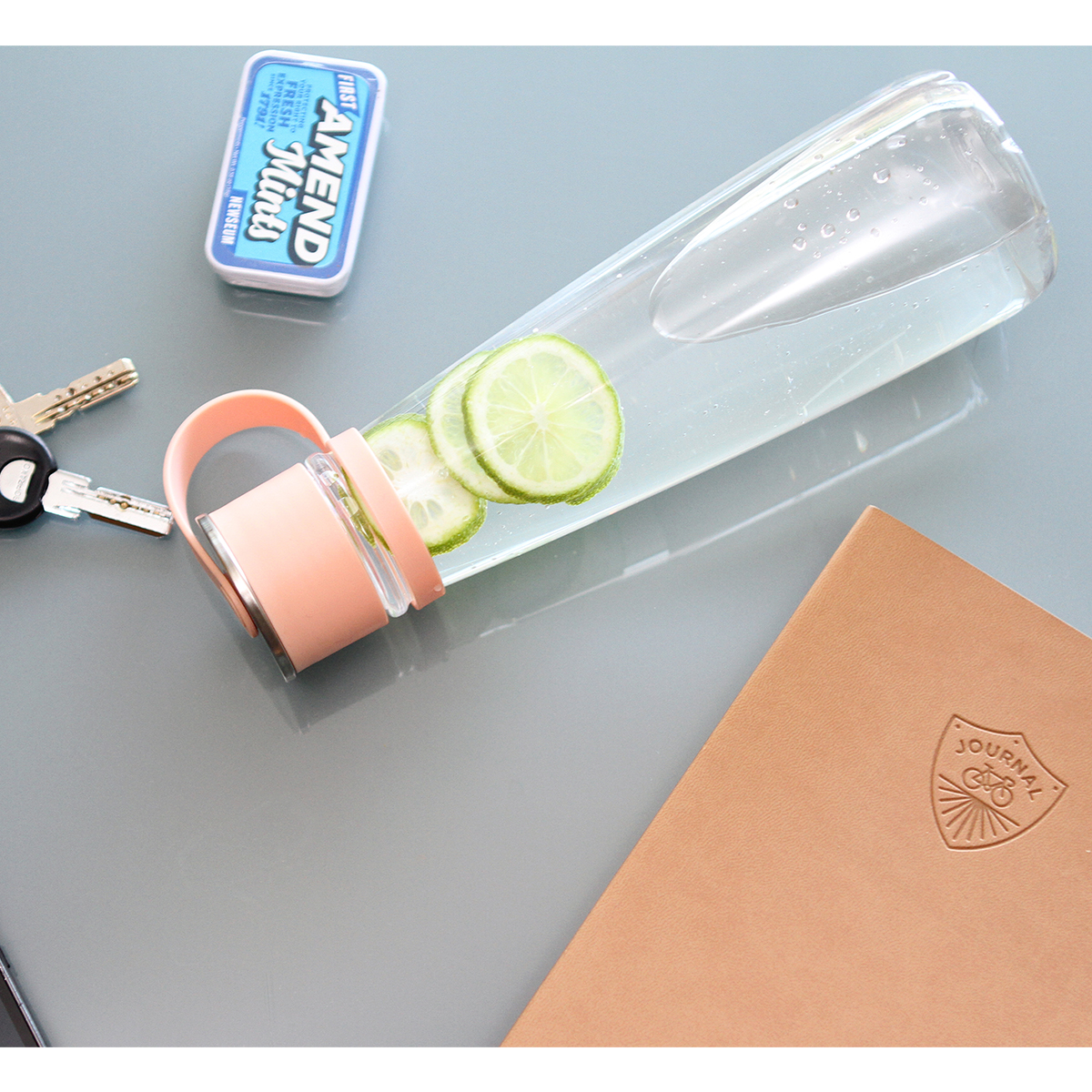 Cilindro de policarbonato con tapa en polipropileno y detalle en metal, fabricado con materiales de grado alimenticio, no usar en microondas, capacidad de 580 ml (19 oz).