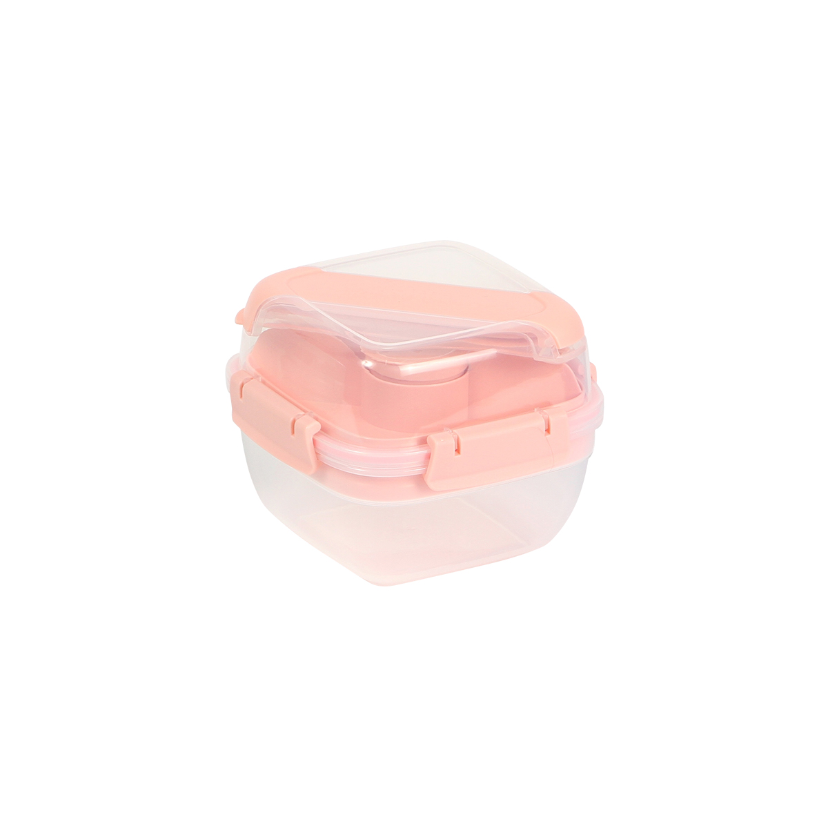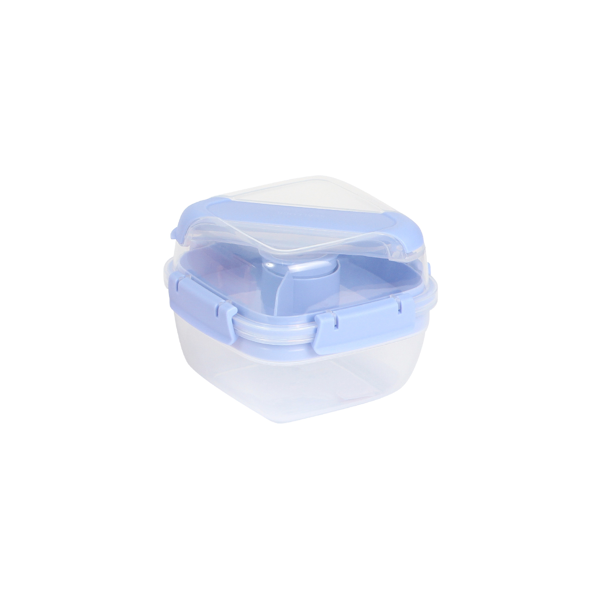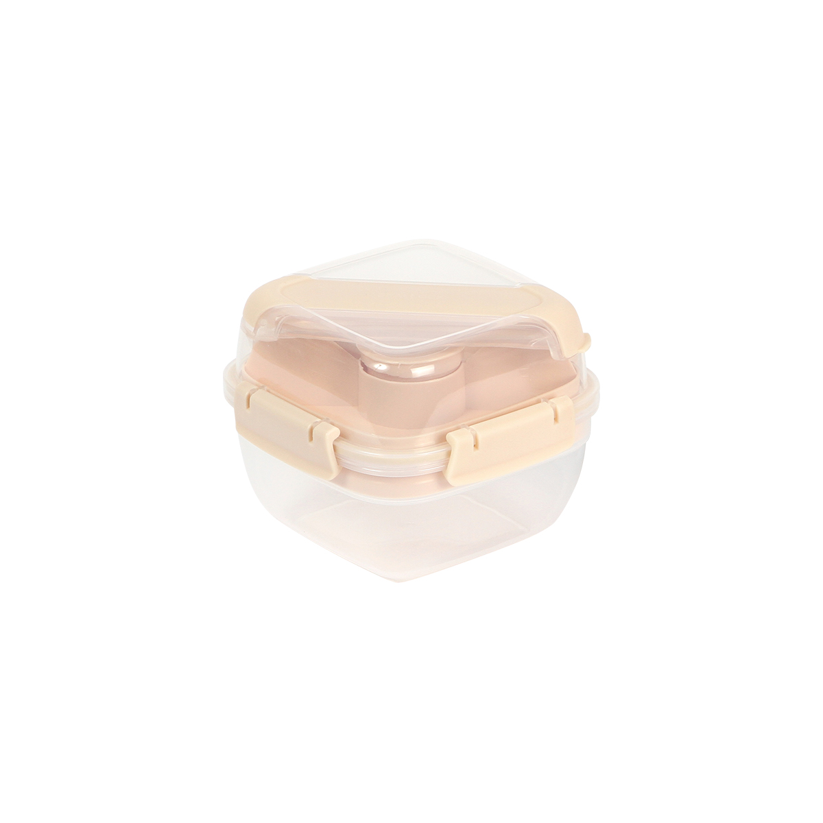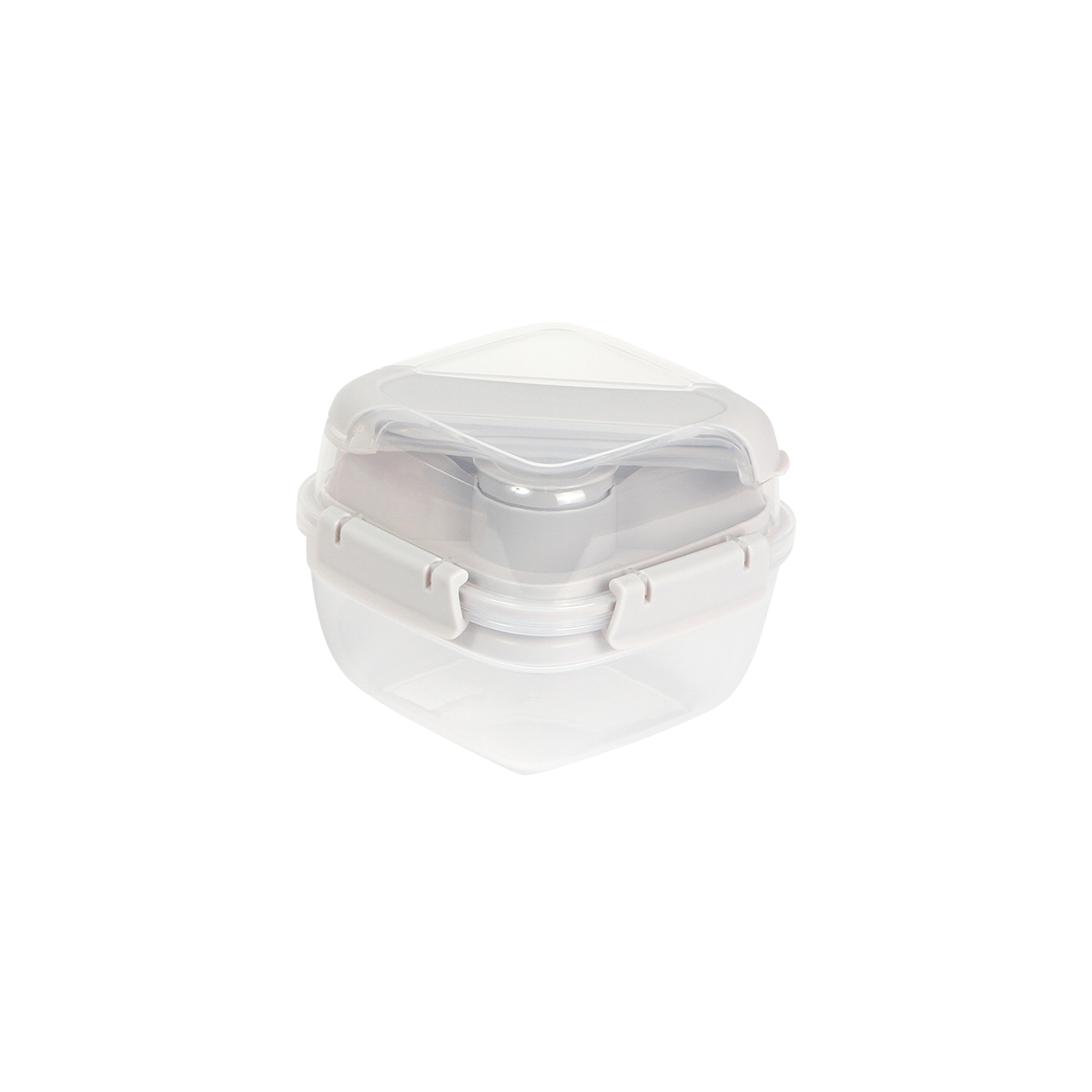 Contenedor de alimentos hermético fabricado en polipropileno y silicón. Es resistente e ideal para mantener tus comidas frescas y seguras. Con diseño compacto y práctico, es perfecto para llevar al trabajo o escuela. Incluye una cuchara, un tenedor, un cuchillo, un contenedor de alimentos con tapa con divisores y un contenedor pequeño tipo salsero.