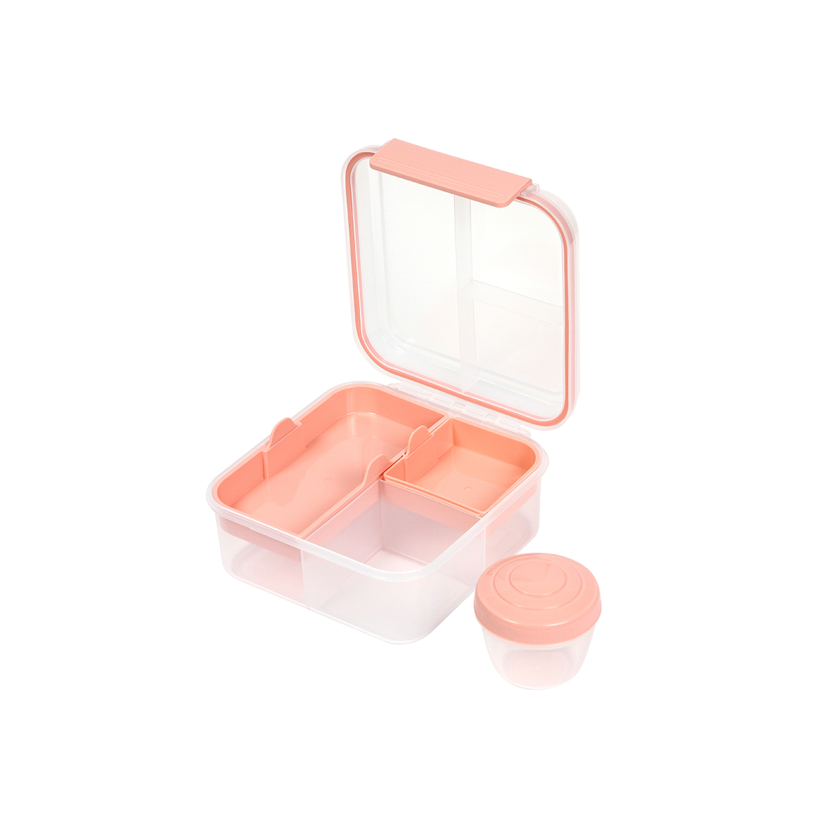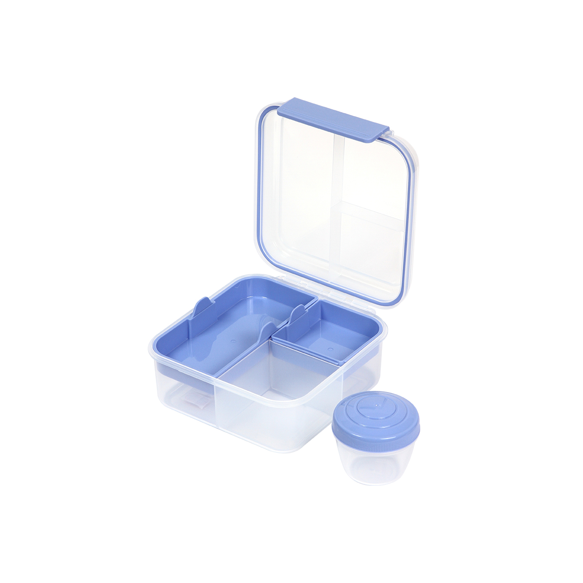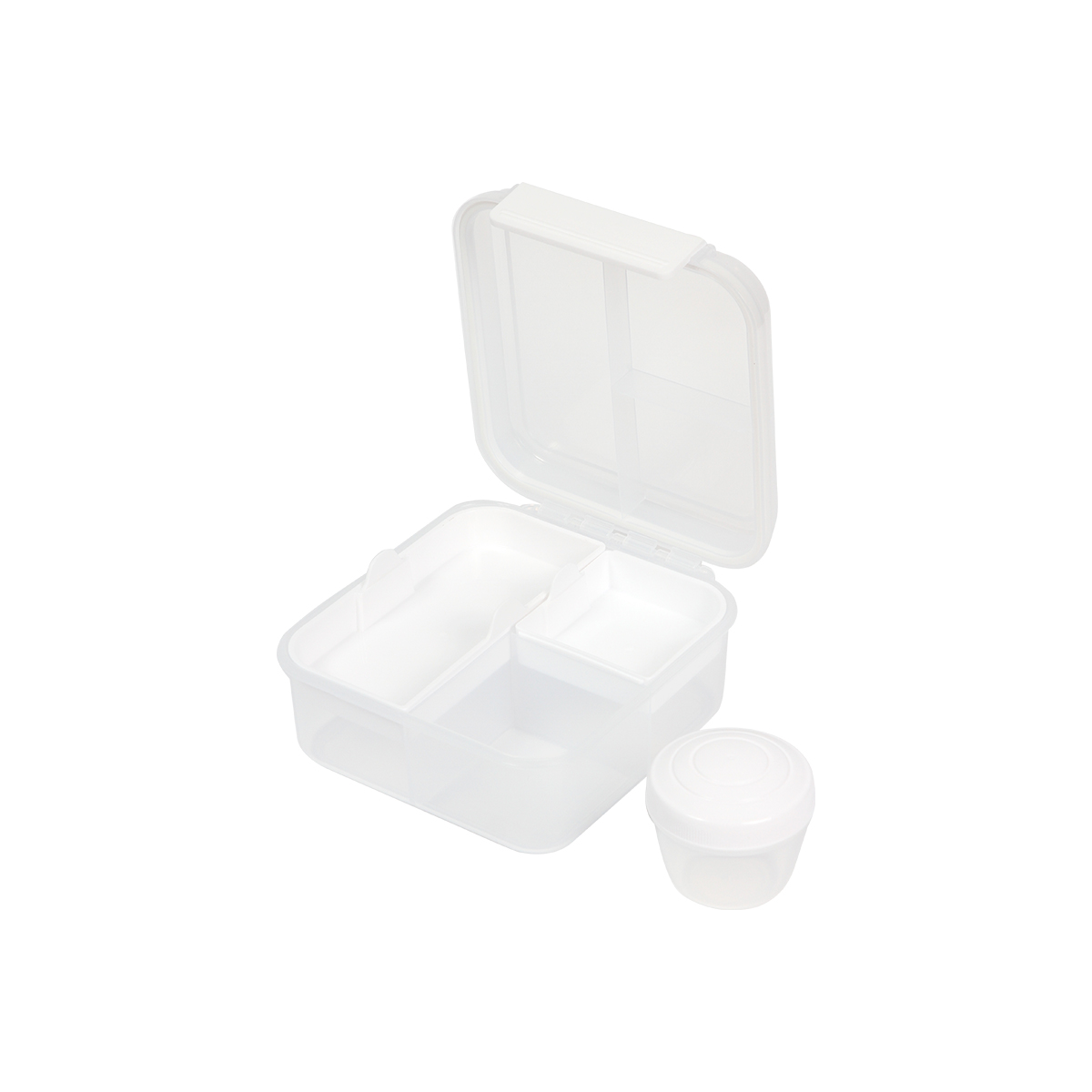 Contenedor de alimentos fabricado en polipropileno y silicón. Es resistente e ideal para mantener tus comidas frescas y seguras. Con diseño compacto y práctico, es perfecto para llevar al trabajo o escuela. Tiene un asa lateral para su fácil transporte.