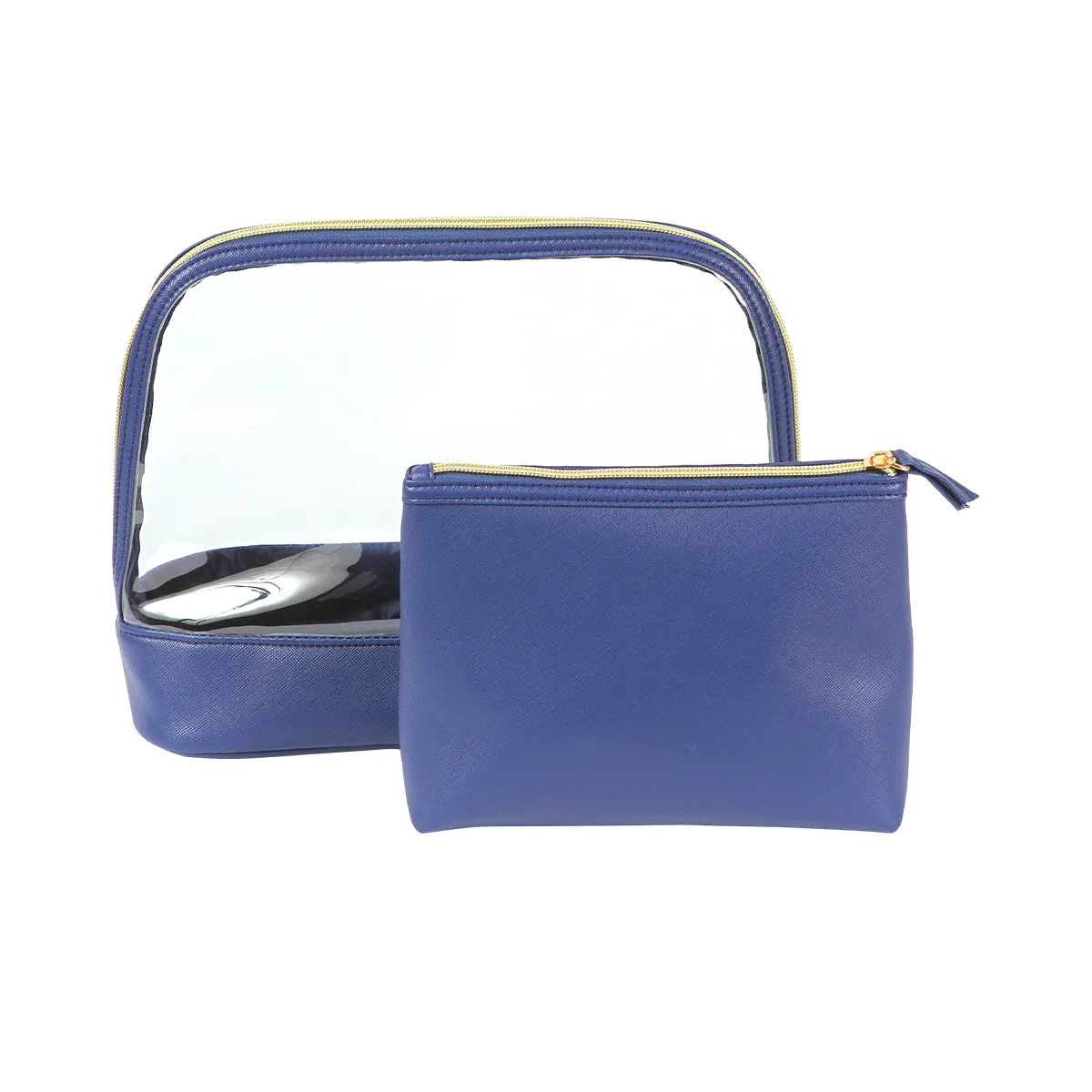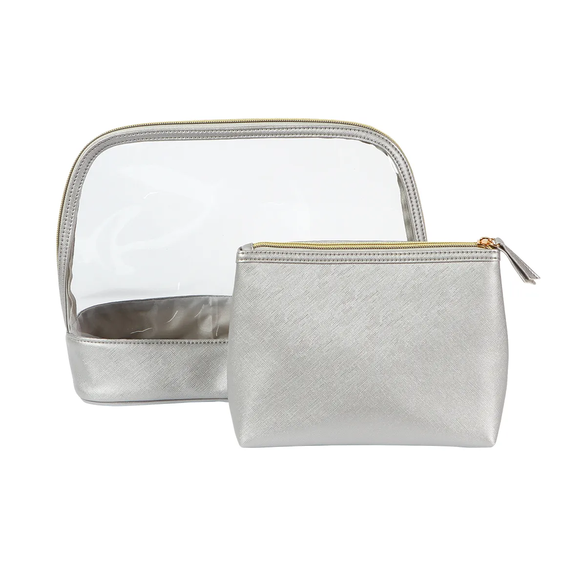Organiza tus esenciales de belleza y cuidado personal con este práctico juego de dos cosmetiqueras, ideal para viajes o uso diario. Incluye una cosmetiquera grande fabricada en plástico PVC transparente, perfecta para visualizar y acceder rápidamente a su contenido, con cierre seguro y diseño resistente.