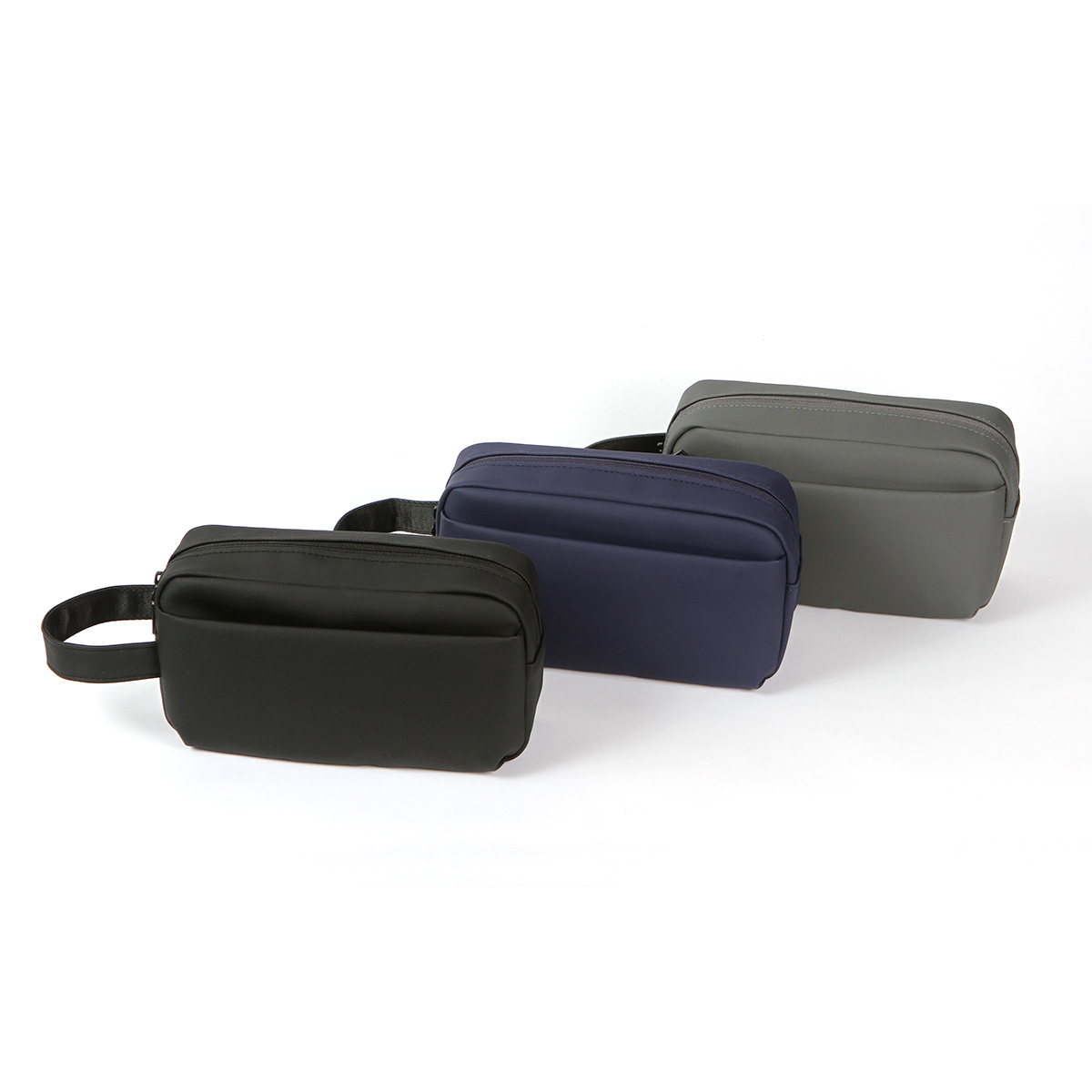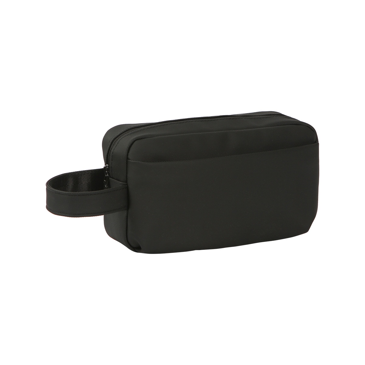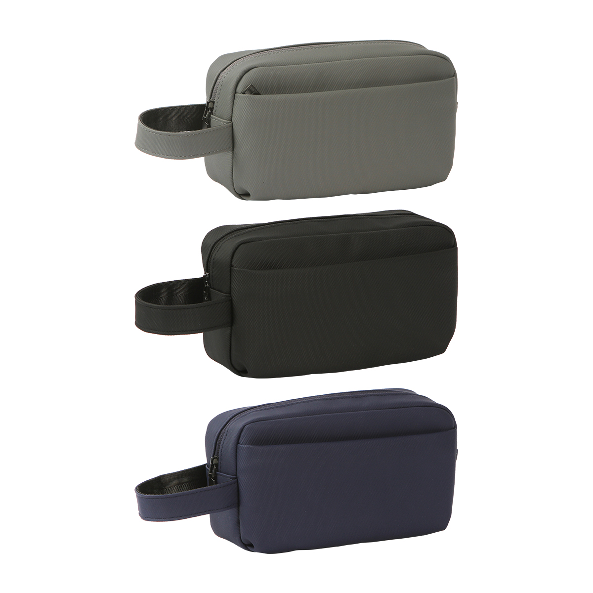 Cosmetiquera fabricada en tela tipo oxford con acabado a prueba de agua. Dentro incluye un forro tipo diamante. Con un compartimento principal con cierre y una agarradera lateral para su fácil manejo.