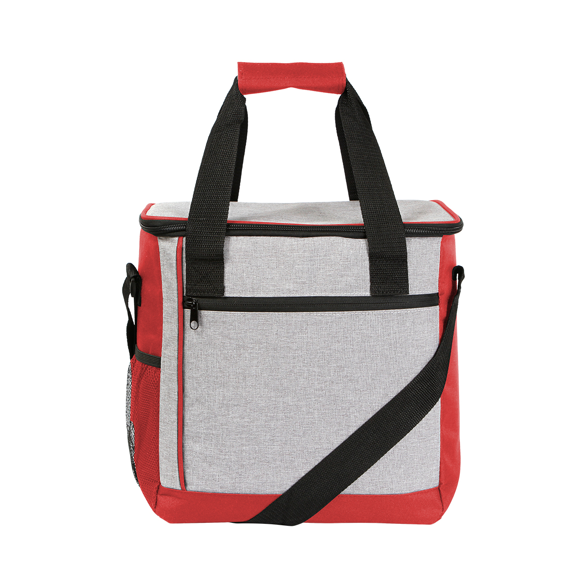 Hielera con interior fabricado en poliéster y forro elaborado en acetato de vinilo y polietileno (PEVA). Con cierre y dos asas.