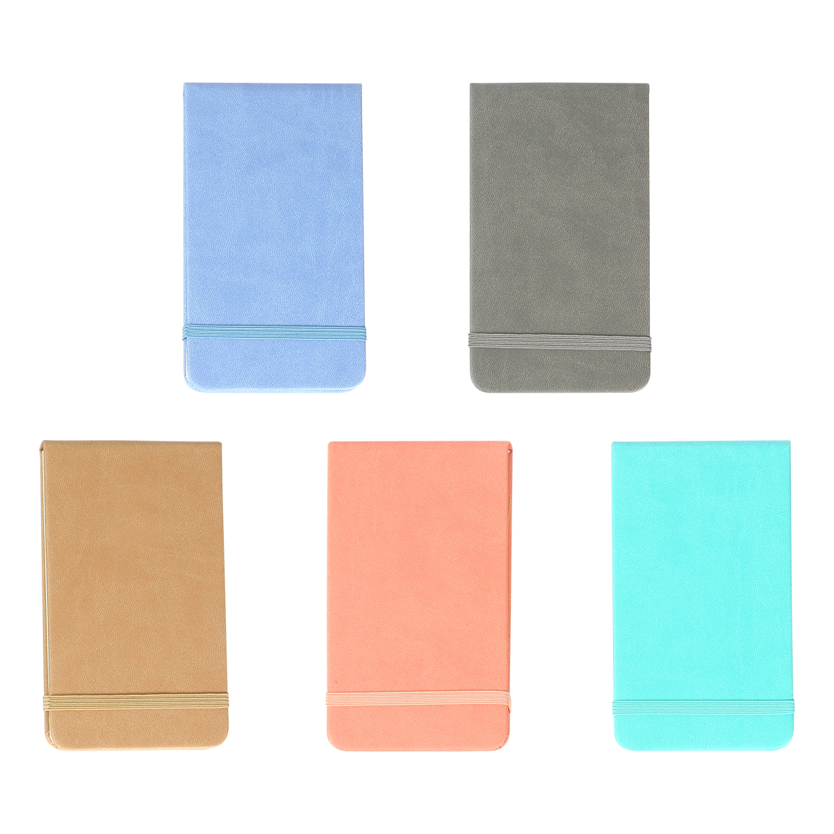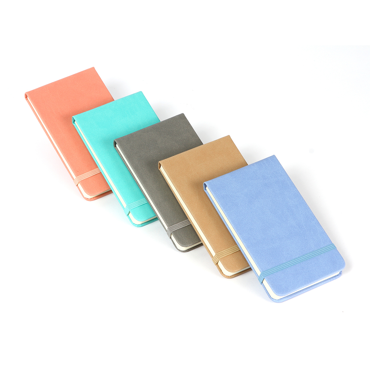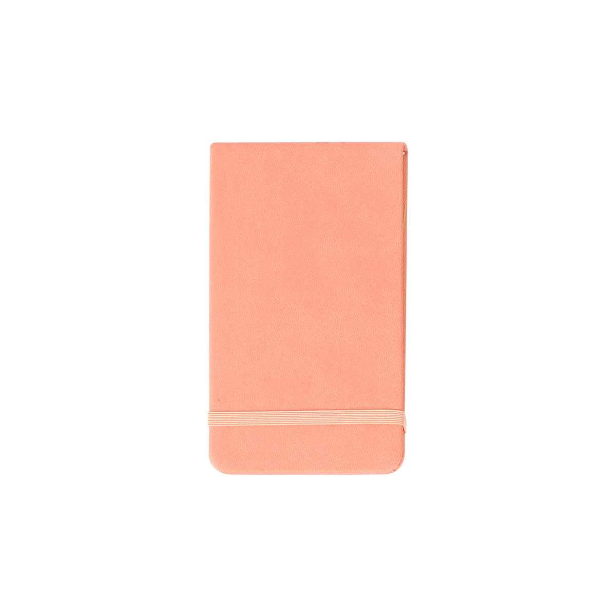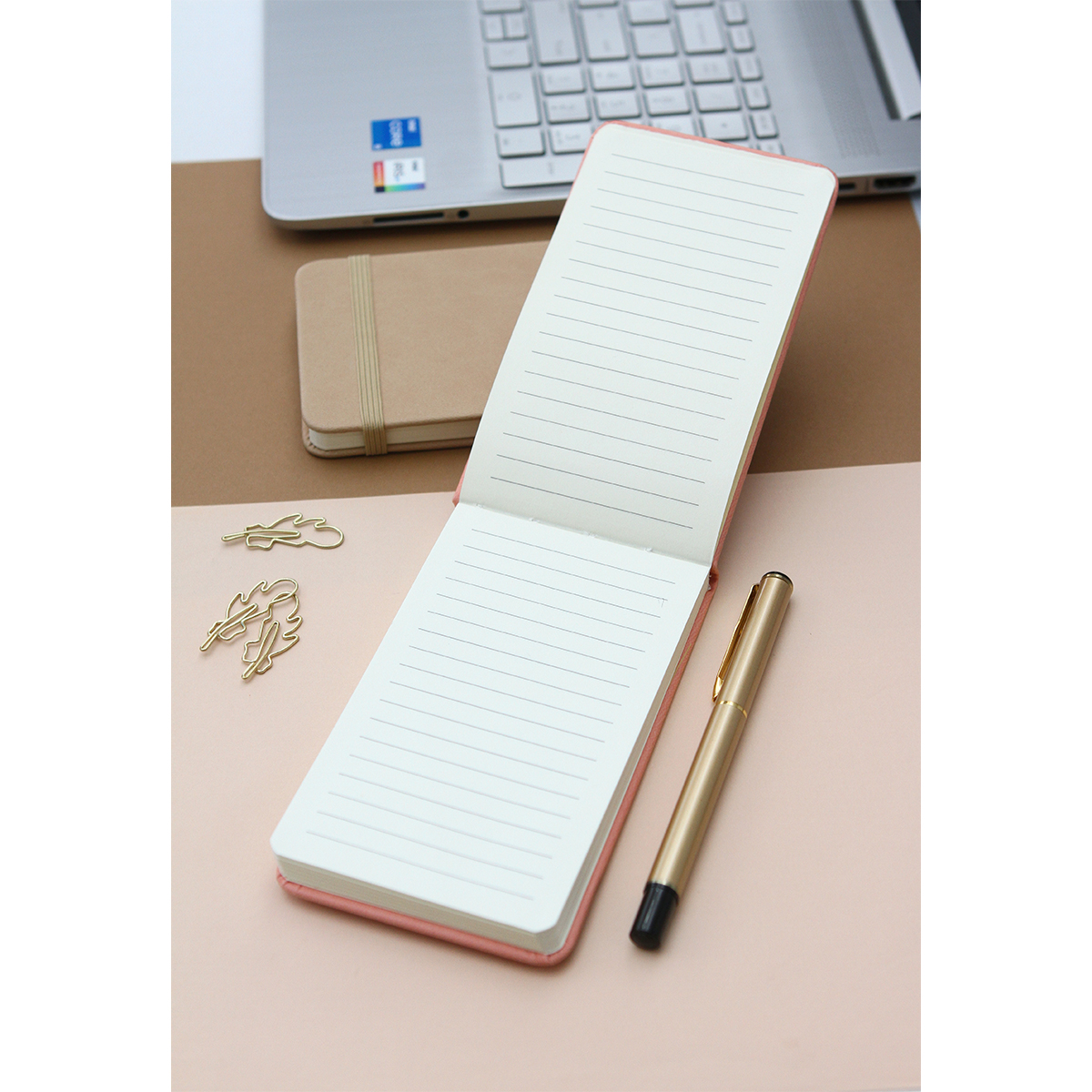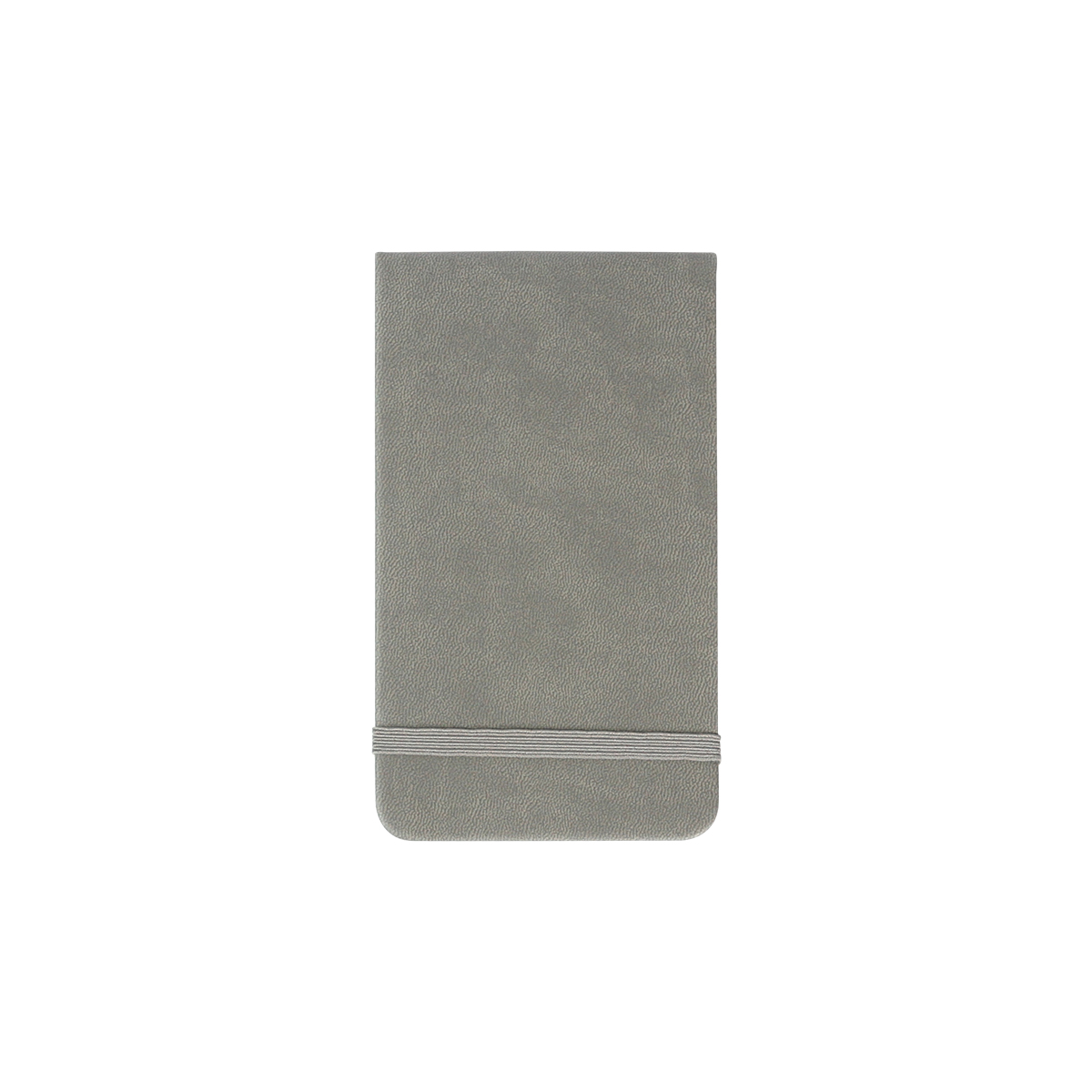 Libreta vertical con cubierta de PU (Poliuretano), 90 páginas de 70 g rayadas color beige, con cierre de banda elástica del mismo color que de la libreta.