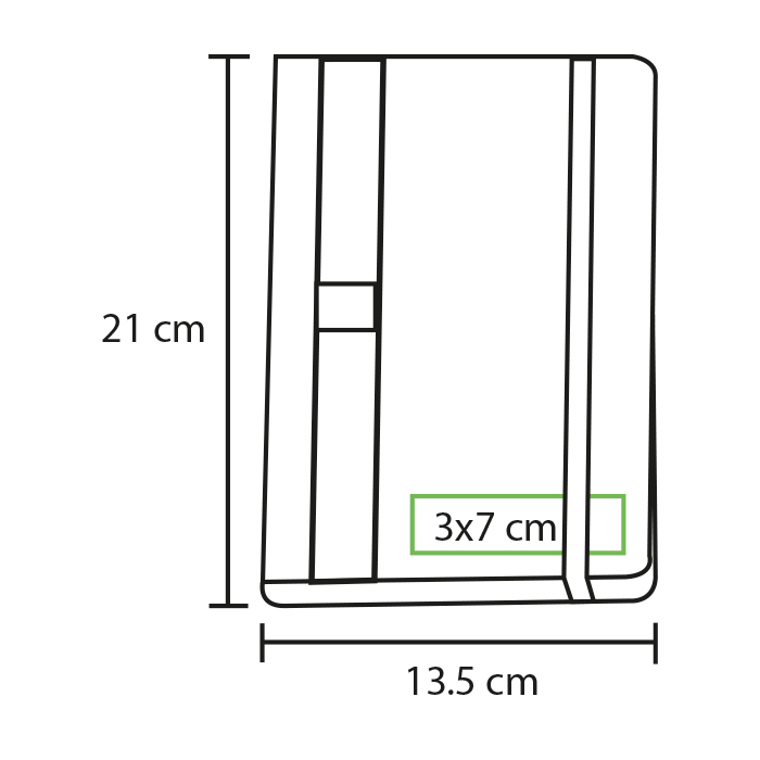 Libreta pasta rígida fabricada en poliuretano con resorte, porta pluma y detalles en color, con 80 hojas de raya. No incluye pluma. Tamaño A5.