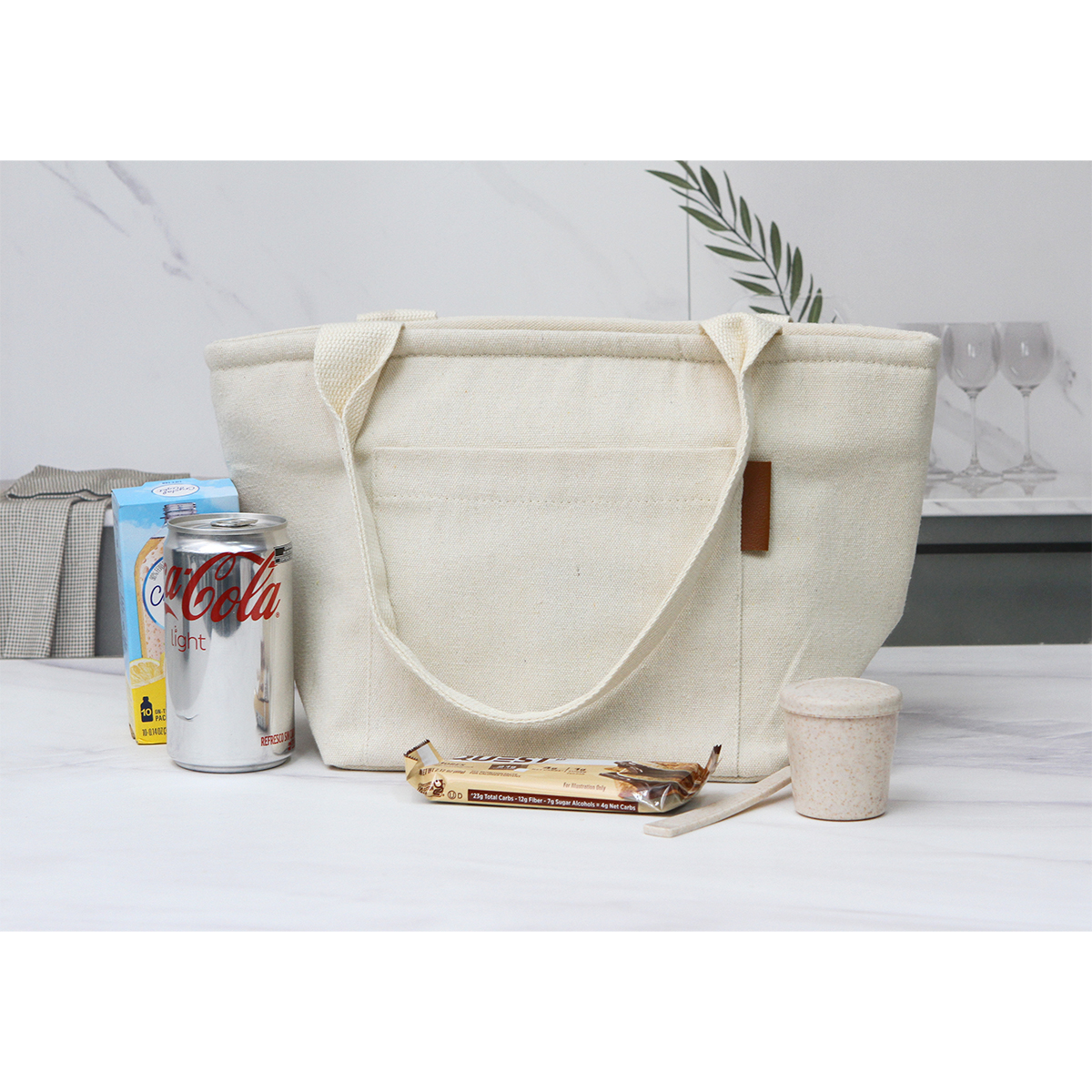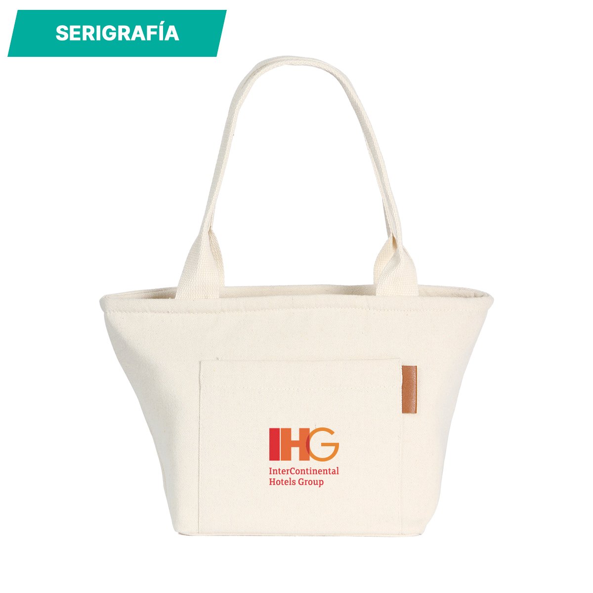 Lonchera fabricada en polialgodón con forro interior de papel aluminio laminado y espuma de poliuretano. Cuenta con dos asas y una pequeña bolsa en el frente. Es ideal para mantener tus bebidas o alimentos frescos. Capacidad de 6.4 L.