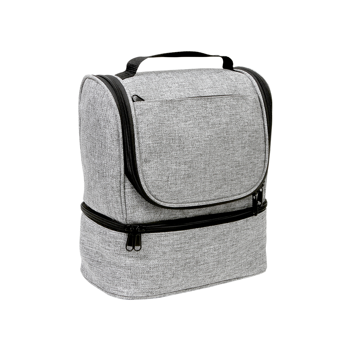 Hielera fabricada en poliéster. Cuenta con: compartimento inferior, bolsillo frontal y asa superior.