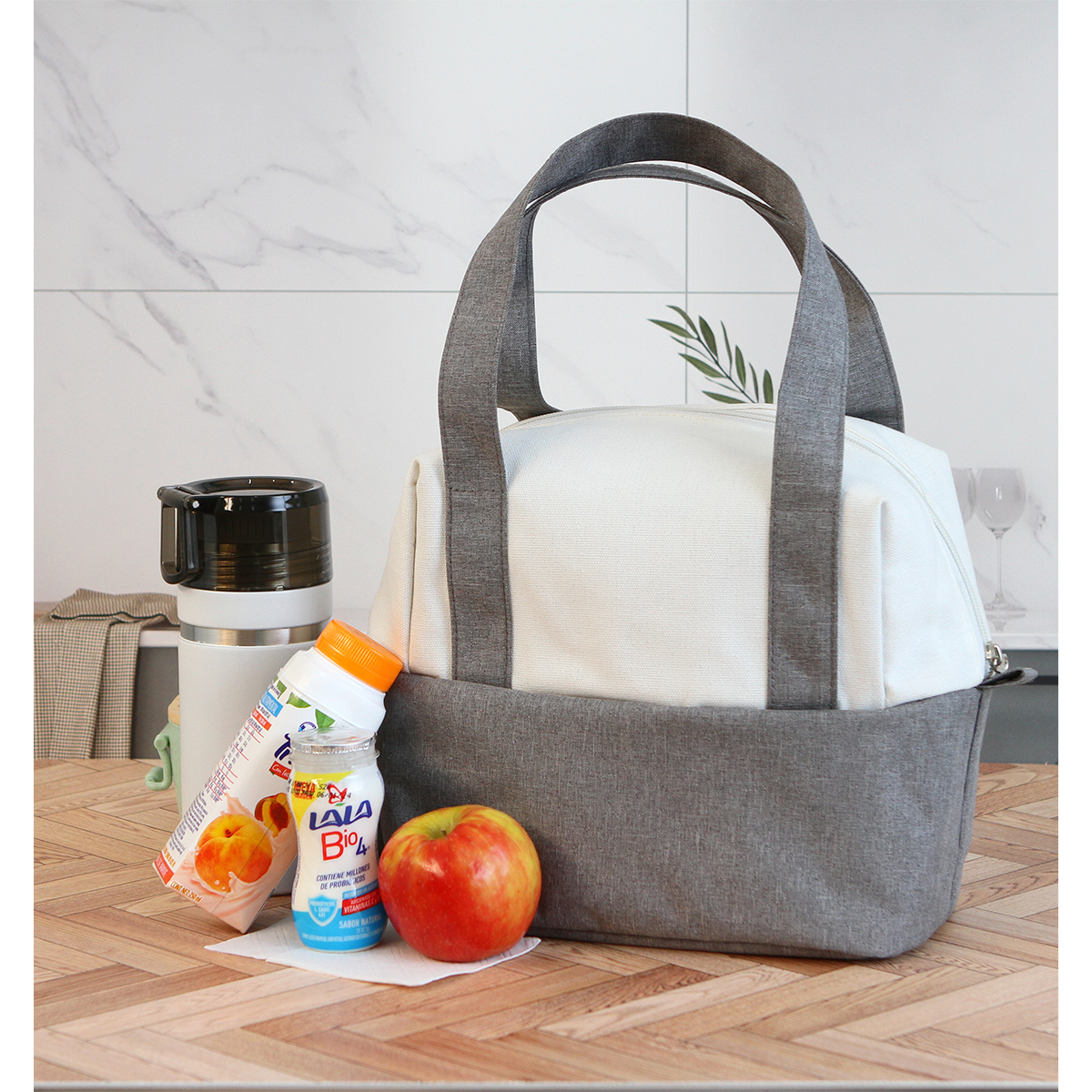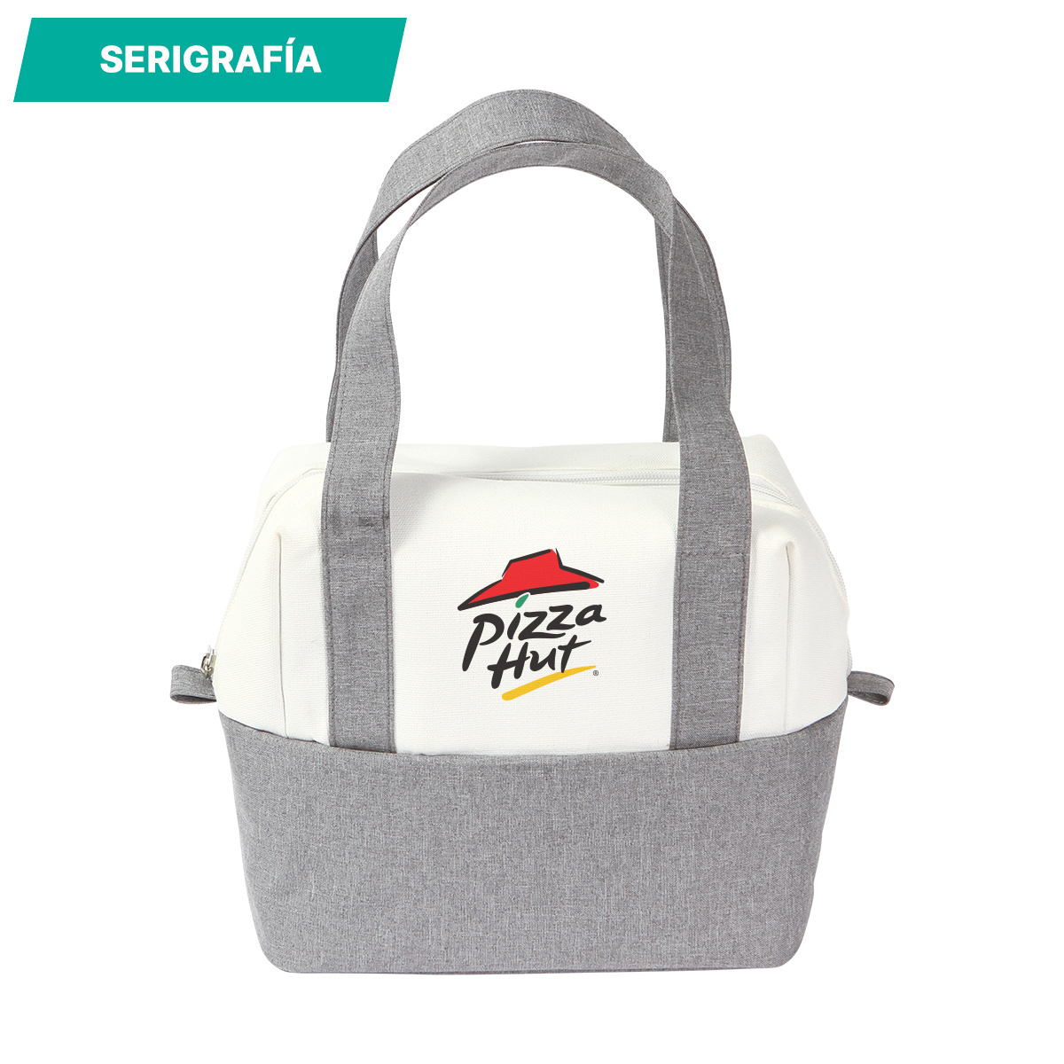 Lonchera hermética fabricada en poliéster, PEVA y Canvas, con forro interno ideal para llevar tus comidas y bebidas de forma segura y mantener su temperatura durante más tiempo. Cuenta con un compartimento principal con cremallera y dos asas a los lados.