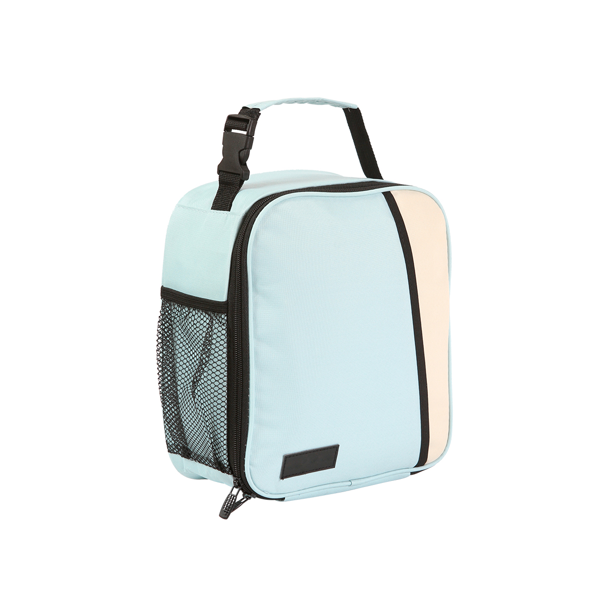 Lonchera térmica fabricada en poliéster y papel aluminio, con cubierta de curpiel y diseño bicolor. Incluye dos asas y cierre metálico. Perfecta para transportar alimentos y conservarlos frescos.
