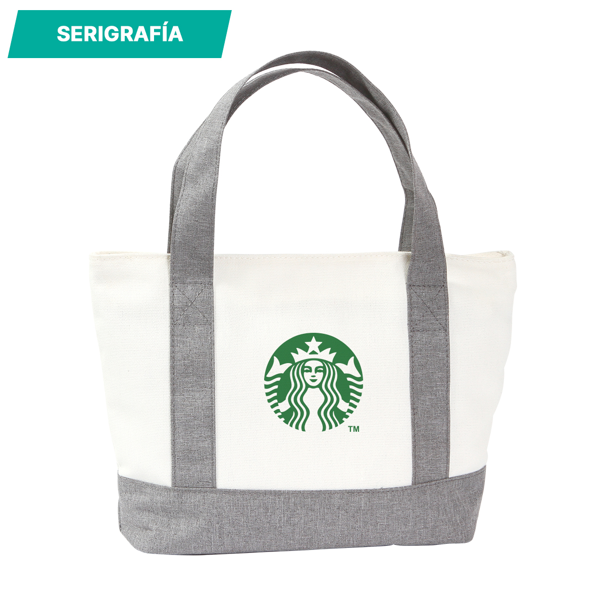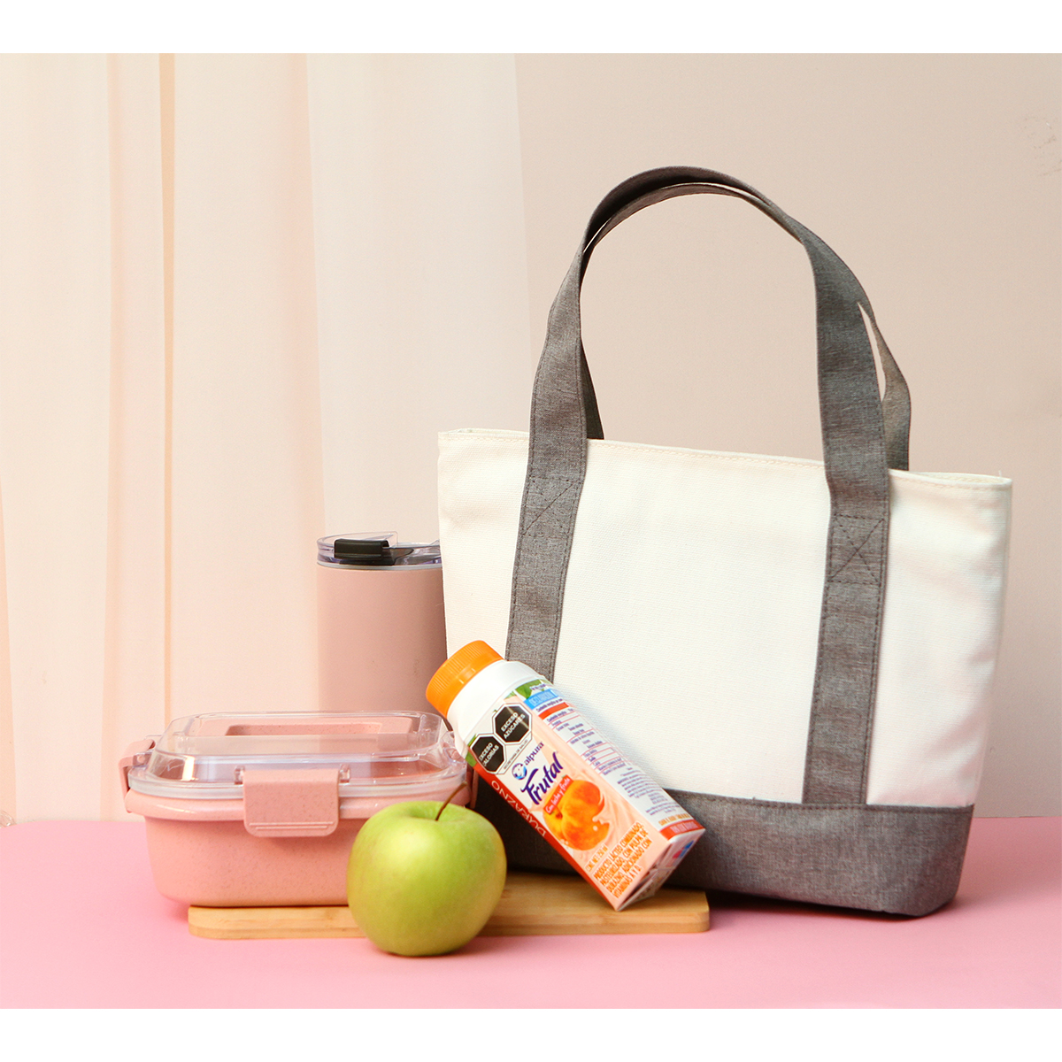 Lonchera hermética fabricada en poliéster, PEVA y Canvas, con forro interno ideal para llevar tus comidas y bebidas de forma segura y mantener su temperatura durante más tiempo. Cuenta con un compartimento principal con cremallera y dos asas a los lados.