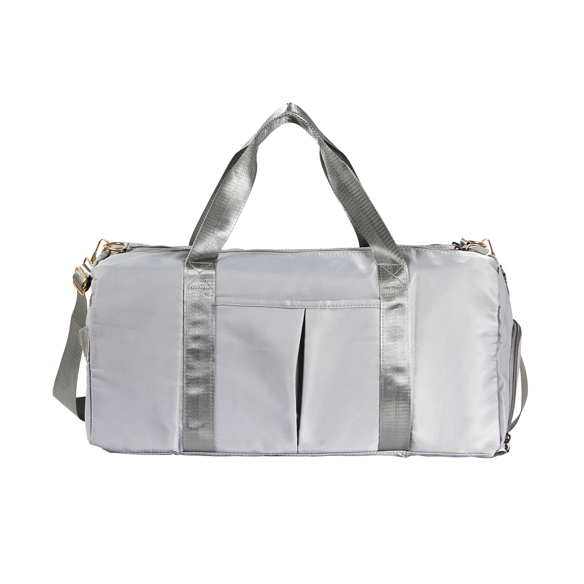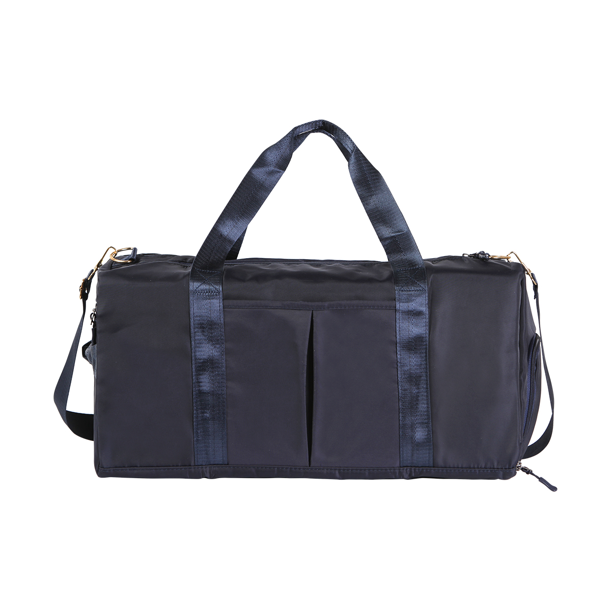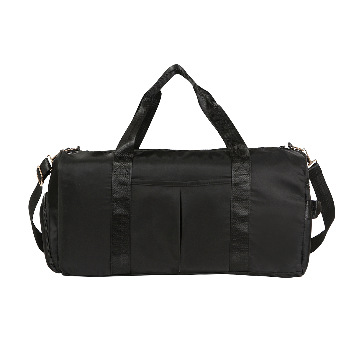 Maleta de viaje a prueba de agua fabricada en tela Oxford repelente 290D. Cuenta con asas, correa ajustable, bolsillos laterales y compartimento en frente.