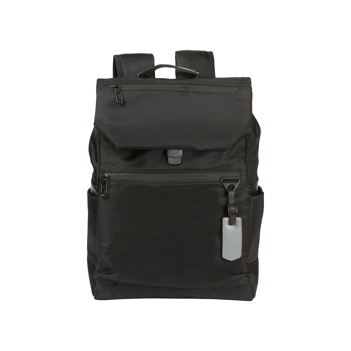 Mochila fabricada en tela poliéster tipo Oxford caracterizada por su resistencia al agua y nylon, con forro interior de poliéster. Cuenta con un compartimento principal, dos compartimentos frontales con cierre, y dos laterales. Tiene dos correas ajustables y acolchonadas para mayor comodidad y un asa superior con detalle en PU. Incluye también un identificador en PU.