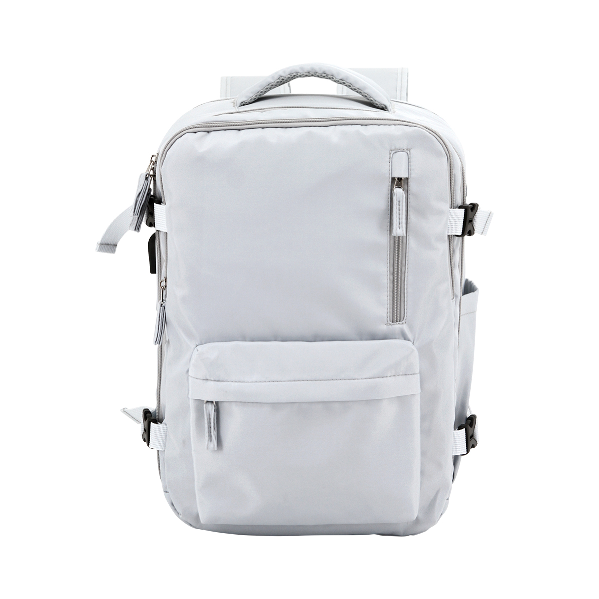 Mochila fabricada en 290D poliéster, salida de cable para cargar dispositivos, cuatro compartimentos ideal para laptop y correas ajustables.