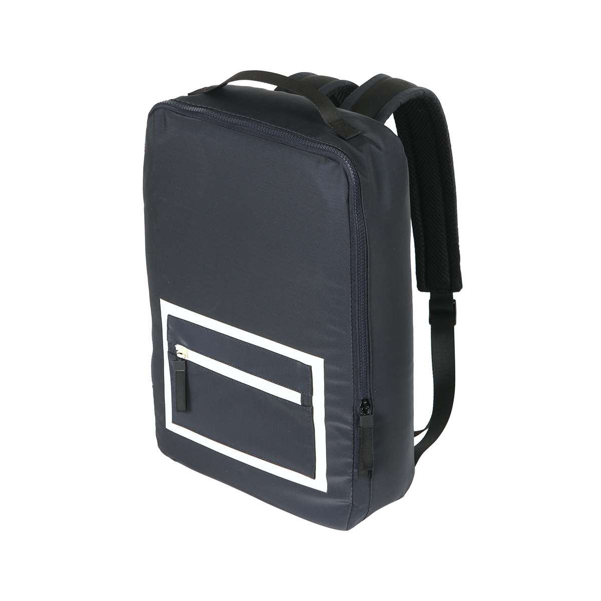 Mochila fabricada en poliéster cuenta con un compartimento principal, interior con diferentes bolsillos para organización y un bolsillo trasero con cremallera, un bolsillo delantero pequeño con cremallera también. Espalda y tirantes acolchados con espuma y malla.