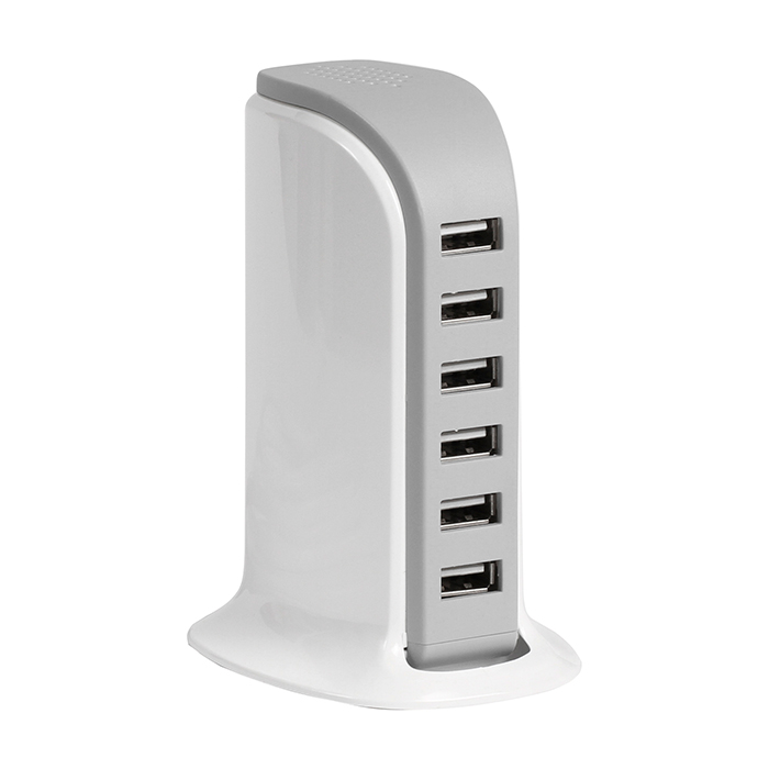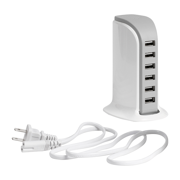 Multiconector de escritorio con 6 entradas puerto USB con cable de corriente incluido.