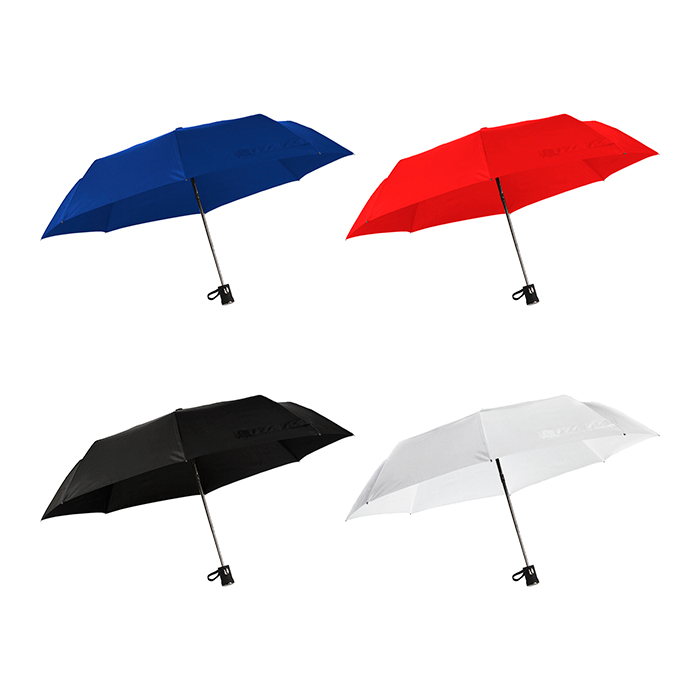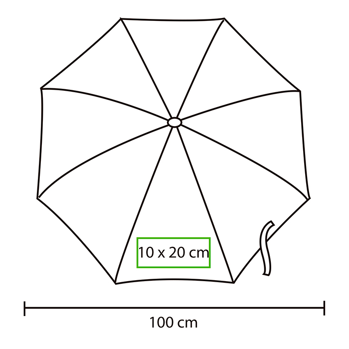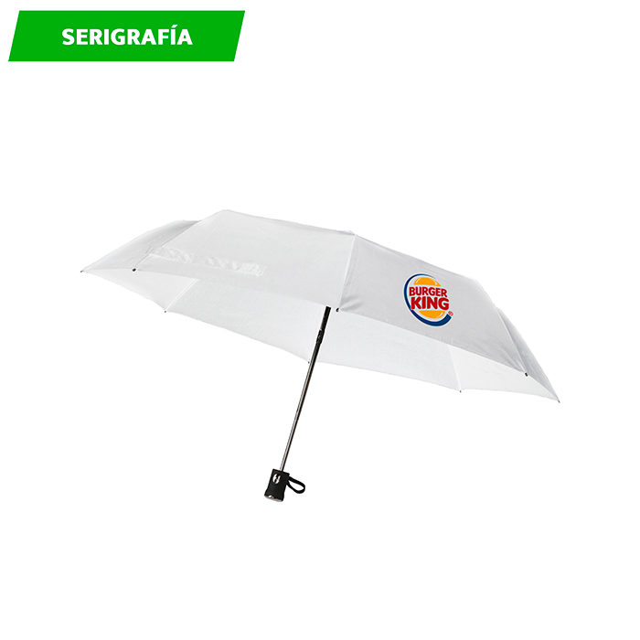 Paraguas de bolsillo fabricado en pongee, con funda, 8 varillas y 8 gajos.