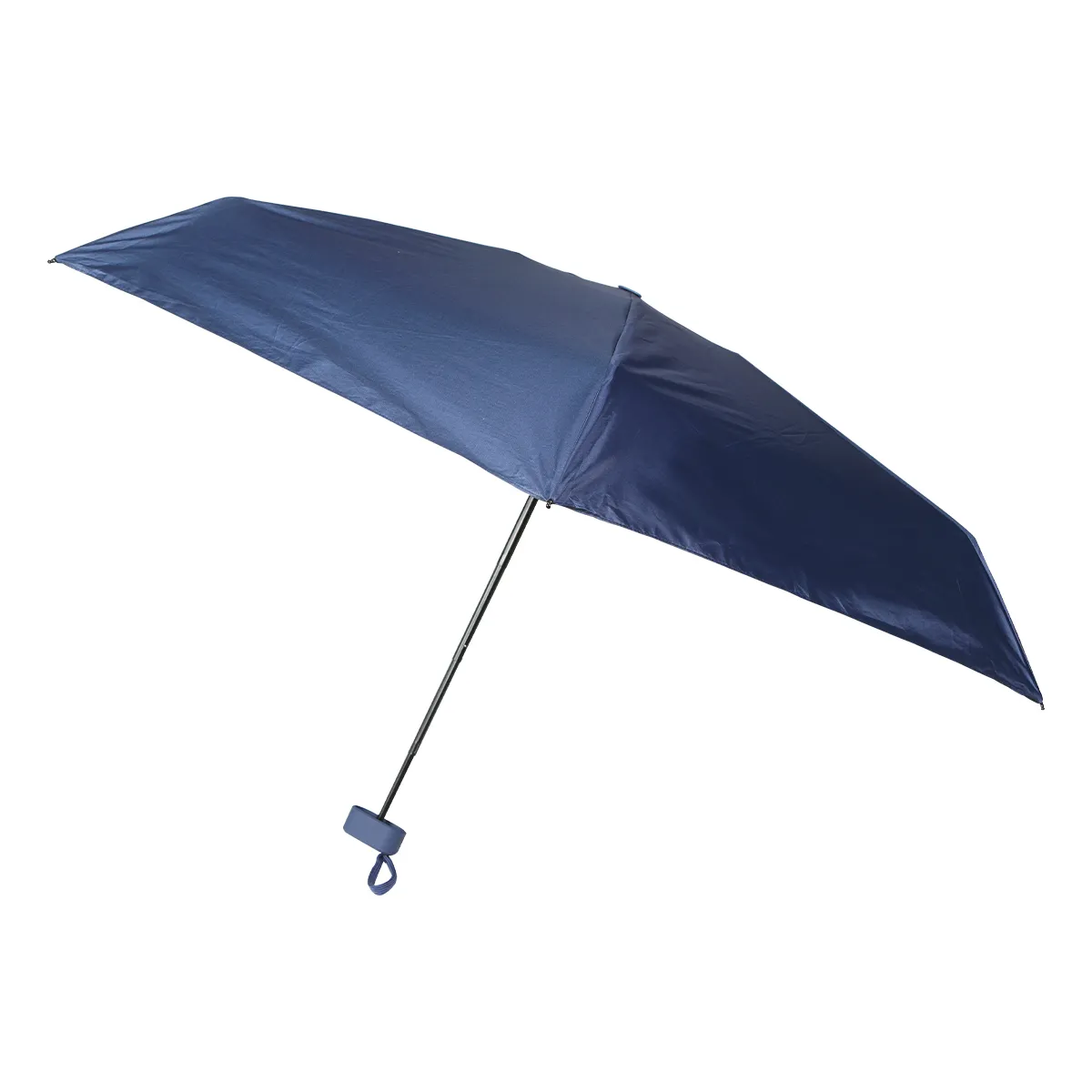 Paraguas plegable fabricado con tela de poliéster resistente al agua, diseñada para mantenerte seco incluso durante lluvias intensas. Su estructura interna está compuesta por varillas metálicas ligeras, que brindan estabilidad y soporte sin agregar peso excesivo. El mango es de plástico ergonómico, acompañado de una correa de seguridad que facilita su agarre y transporte.