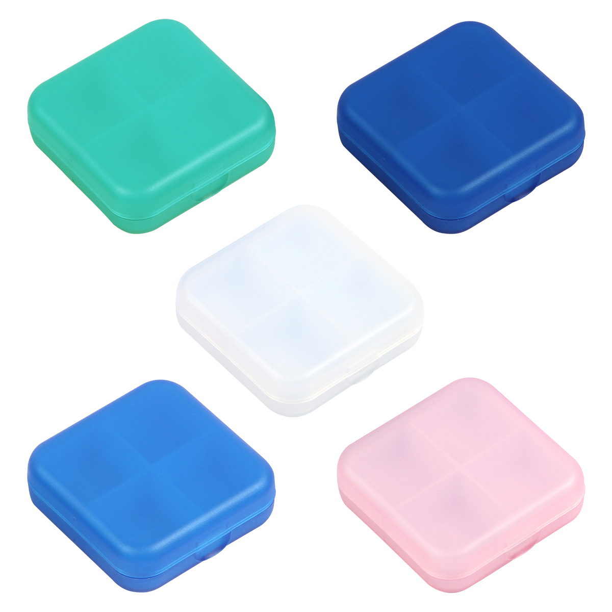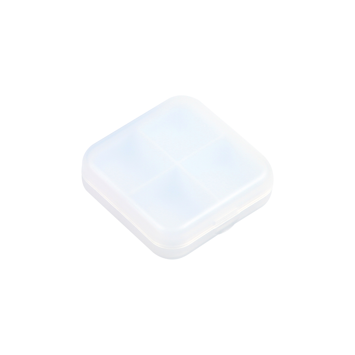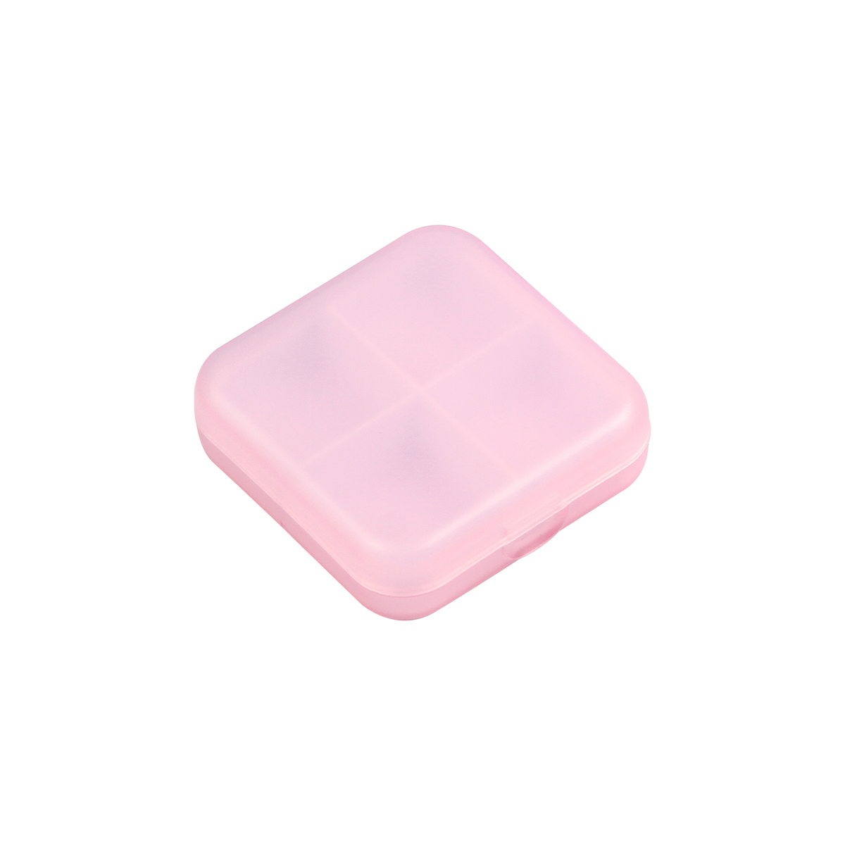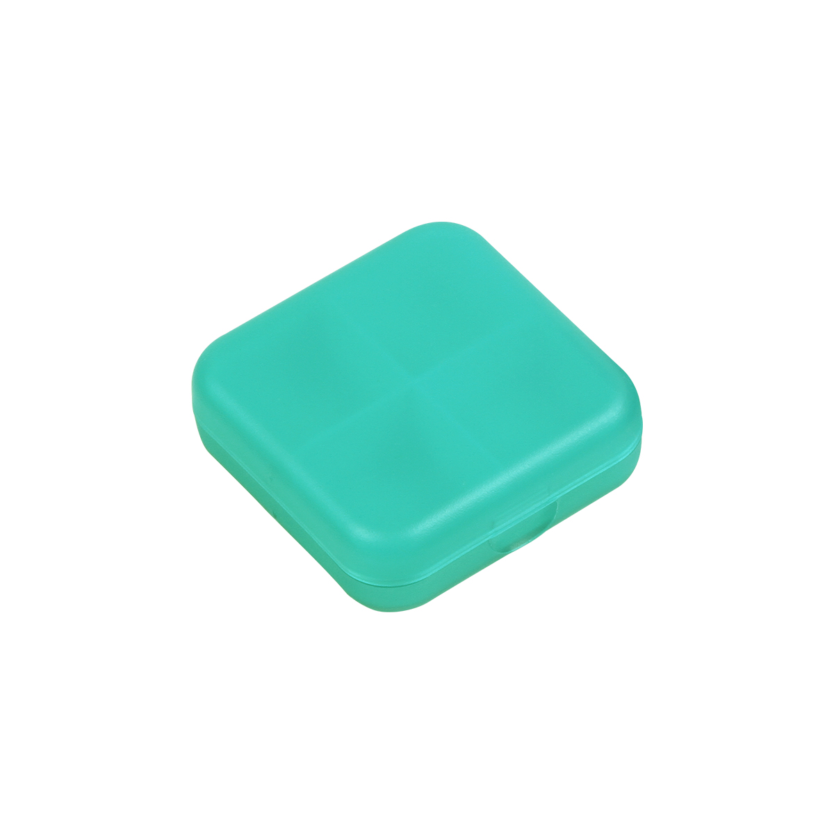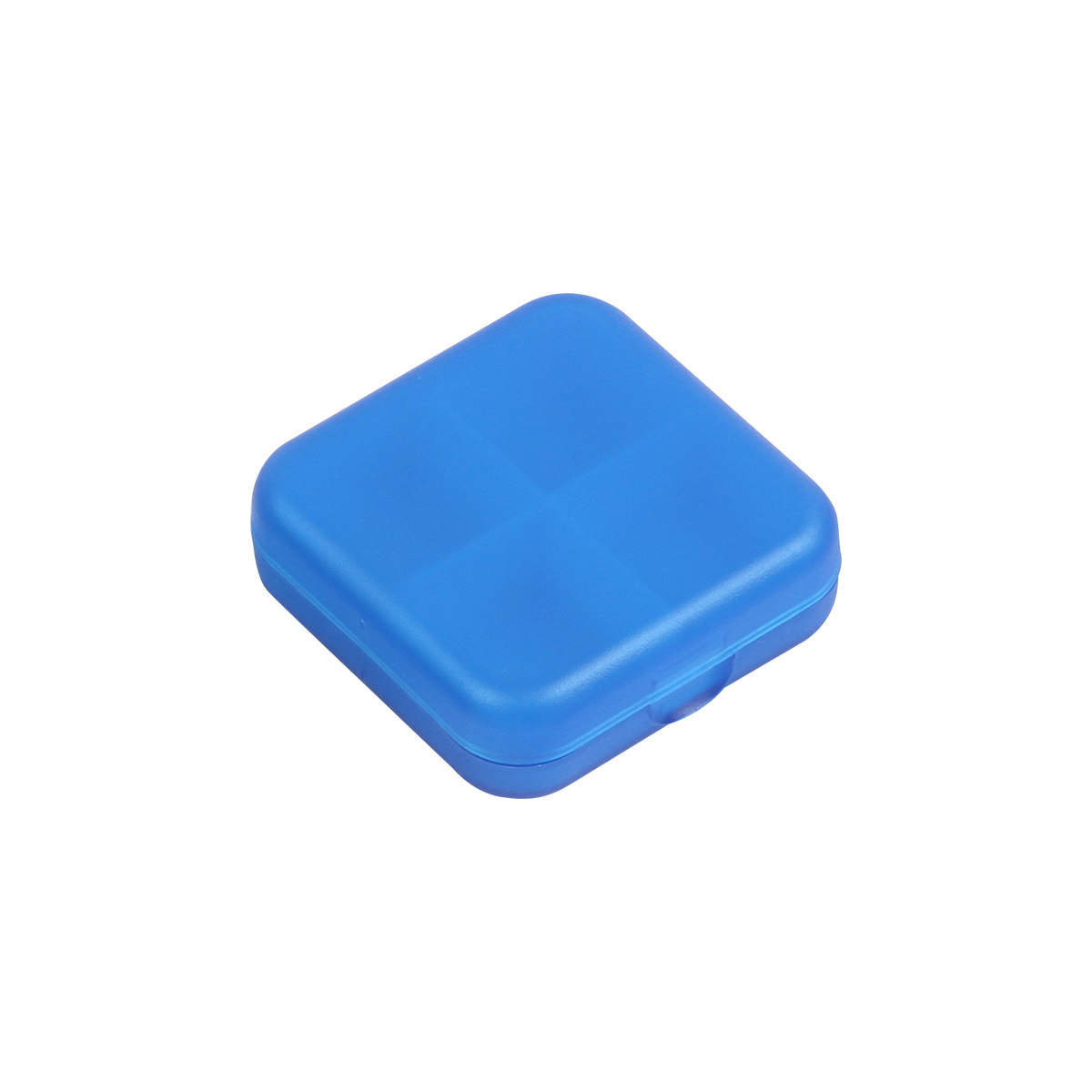 Pastillero de plástico cuadrado con 4 compartimentos y acabado mate.